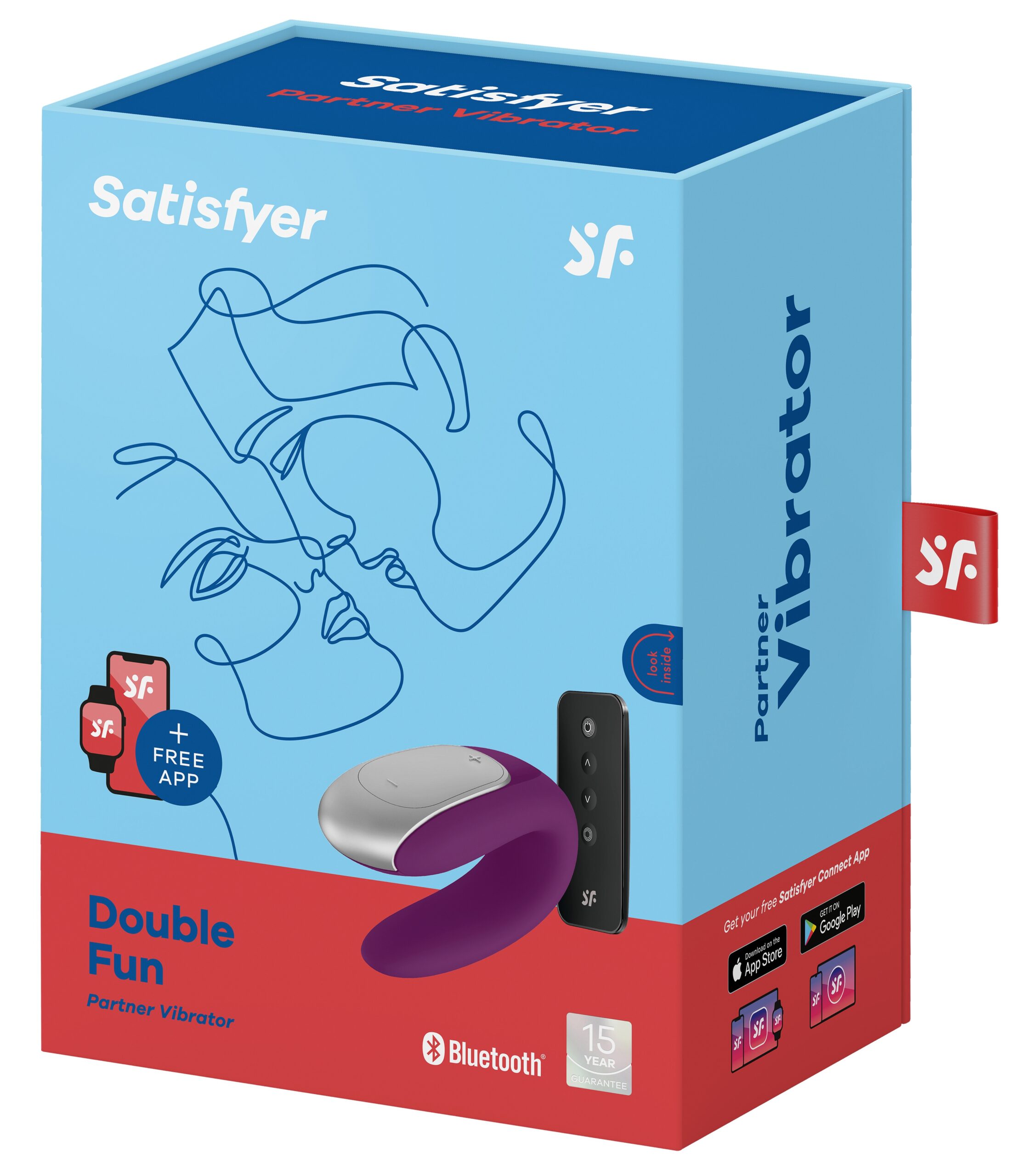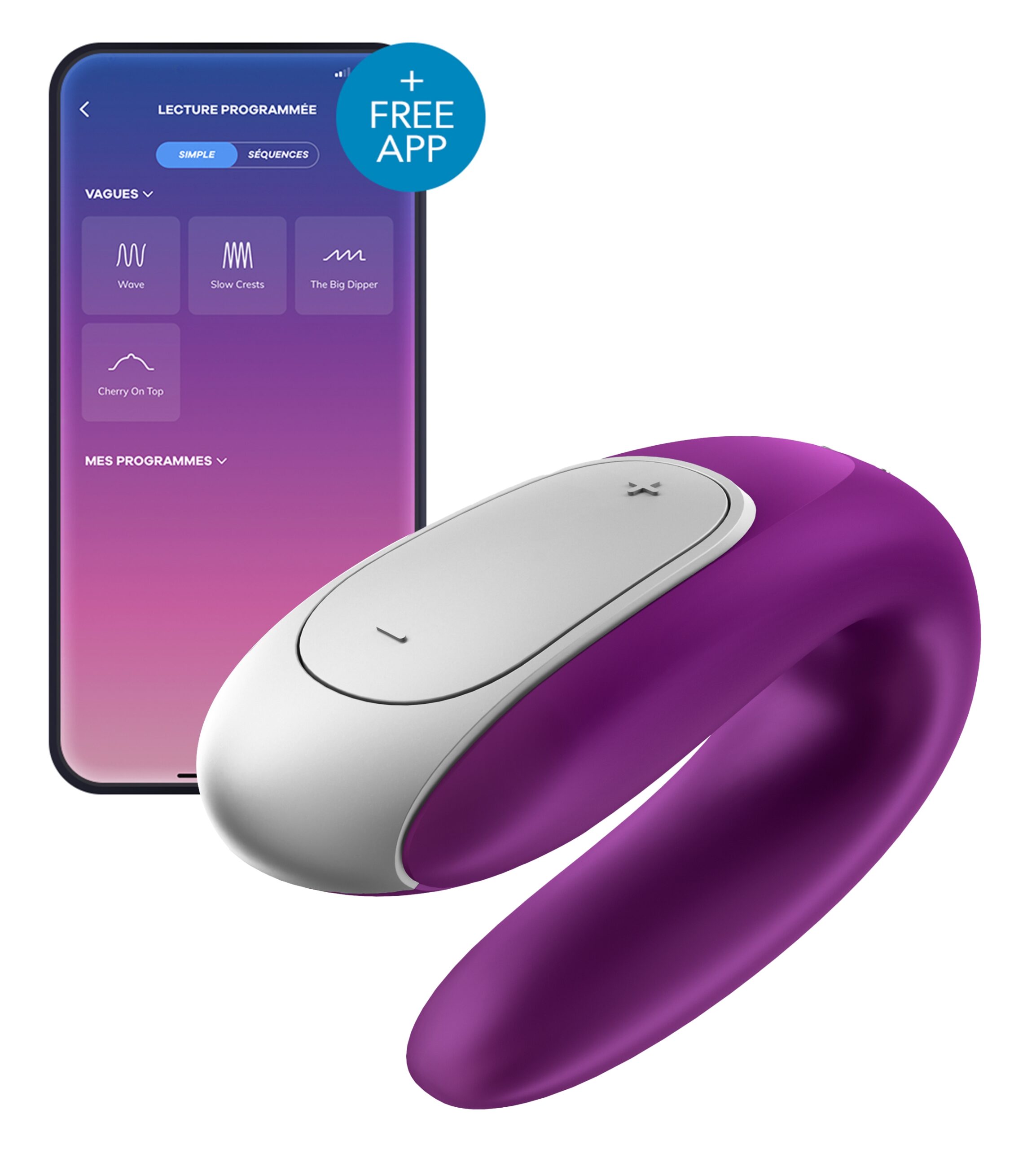 Le stimulateur connecté Double Fun de la marque Satisfyer est un sextoy composé de : la partie stimulateur de clitoris sur le dessus la partie insérable en dessous stimulant le point et le sexe du partenaire pendant des jeux à 2. Avec 2 moteurs indépendants et des modes de vibrations personnalisables avec l’application. Avec une télécommande