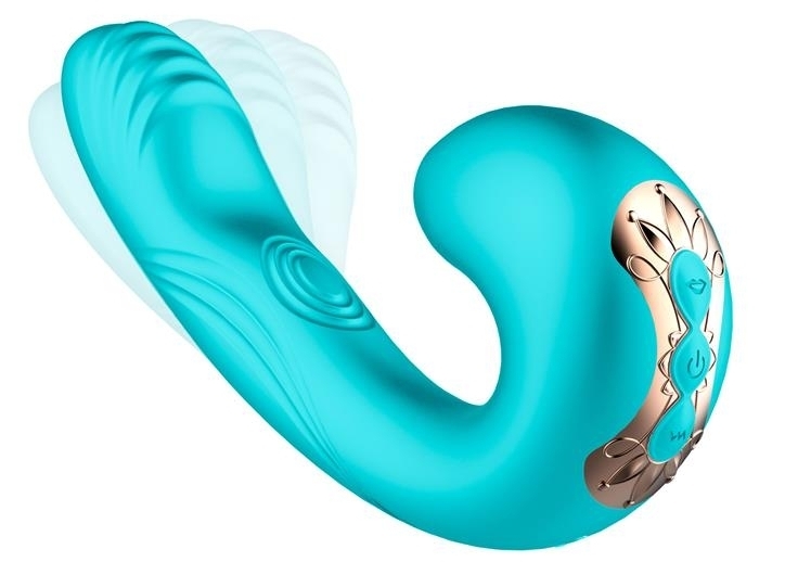 Double stimulateur avec 10 modes de pulsations, 7 modes de vibrations et 7 modes de léchage. Longueur insérable de 14 cm et largeur de 2.5 à 3.2 cm. Rechargeable et étanche. En silicone