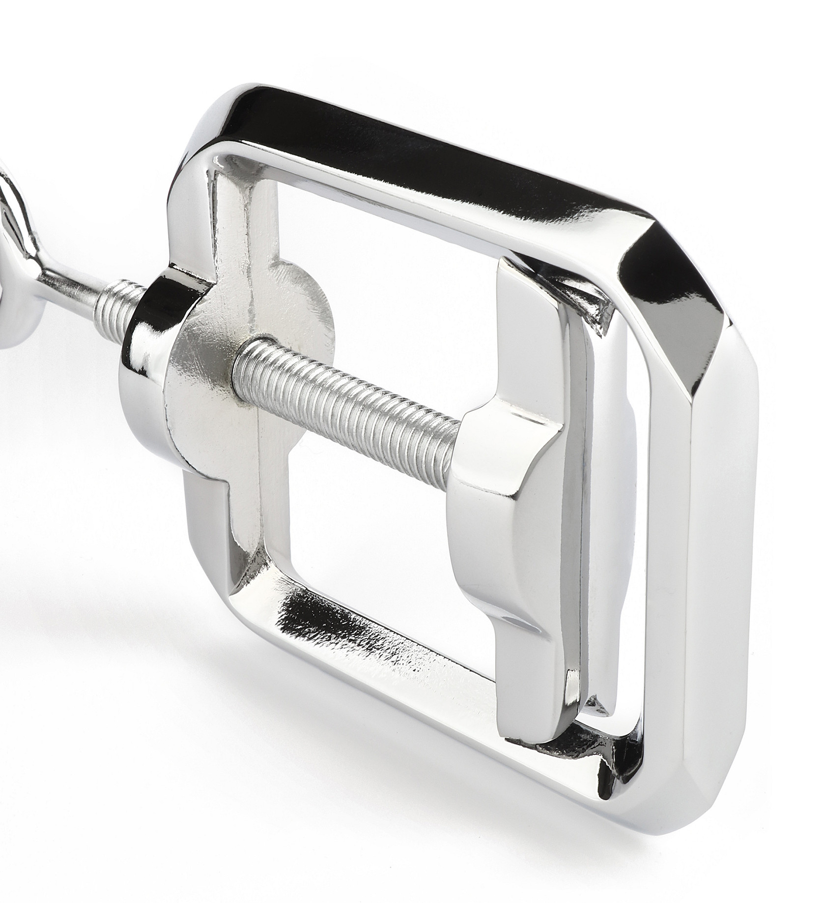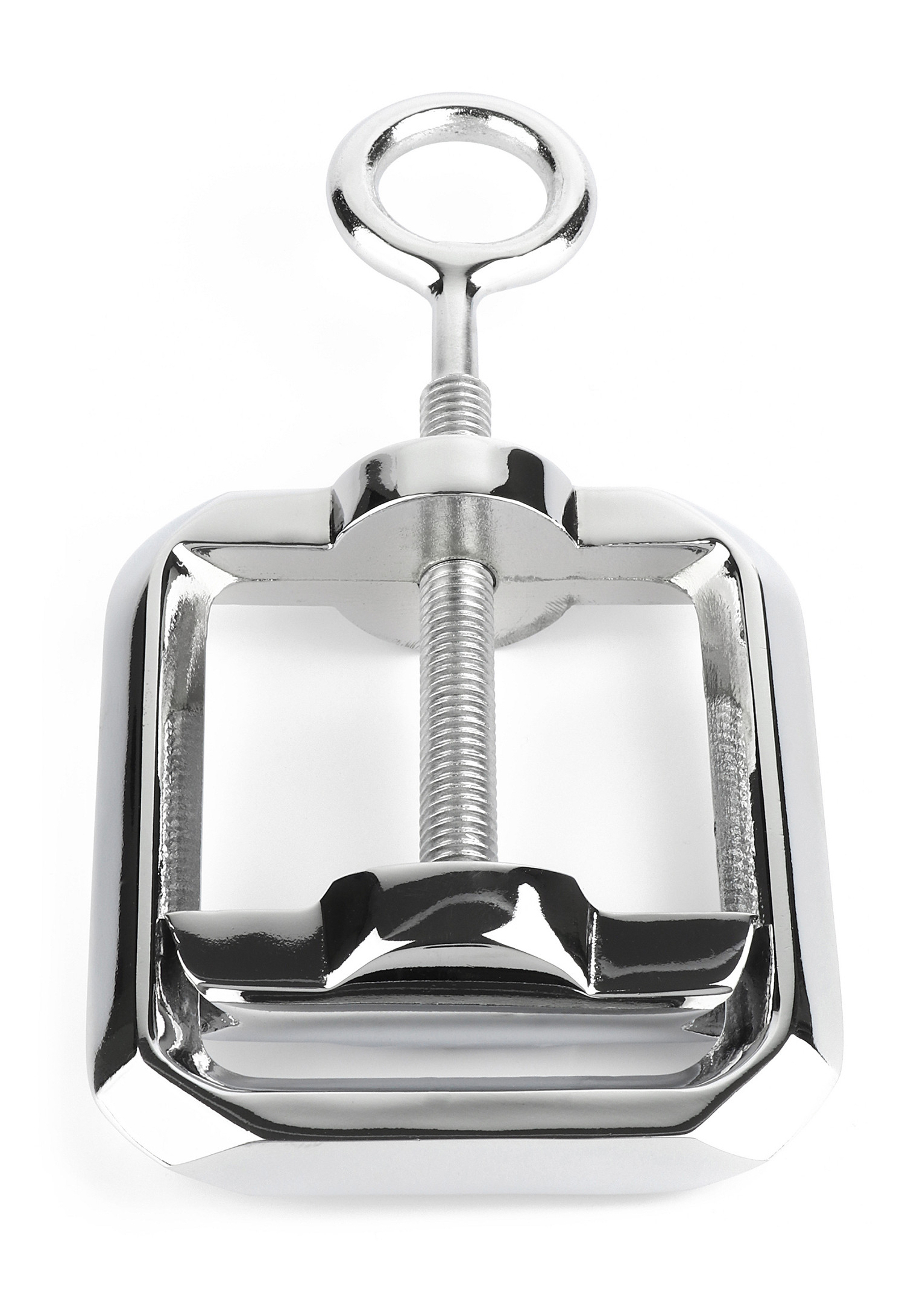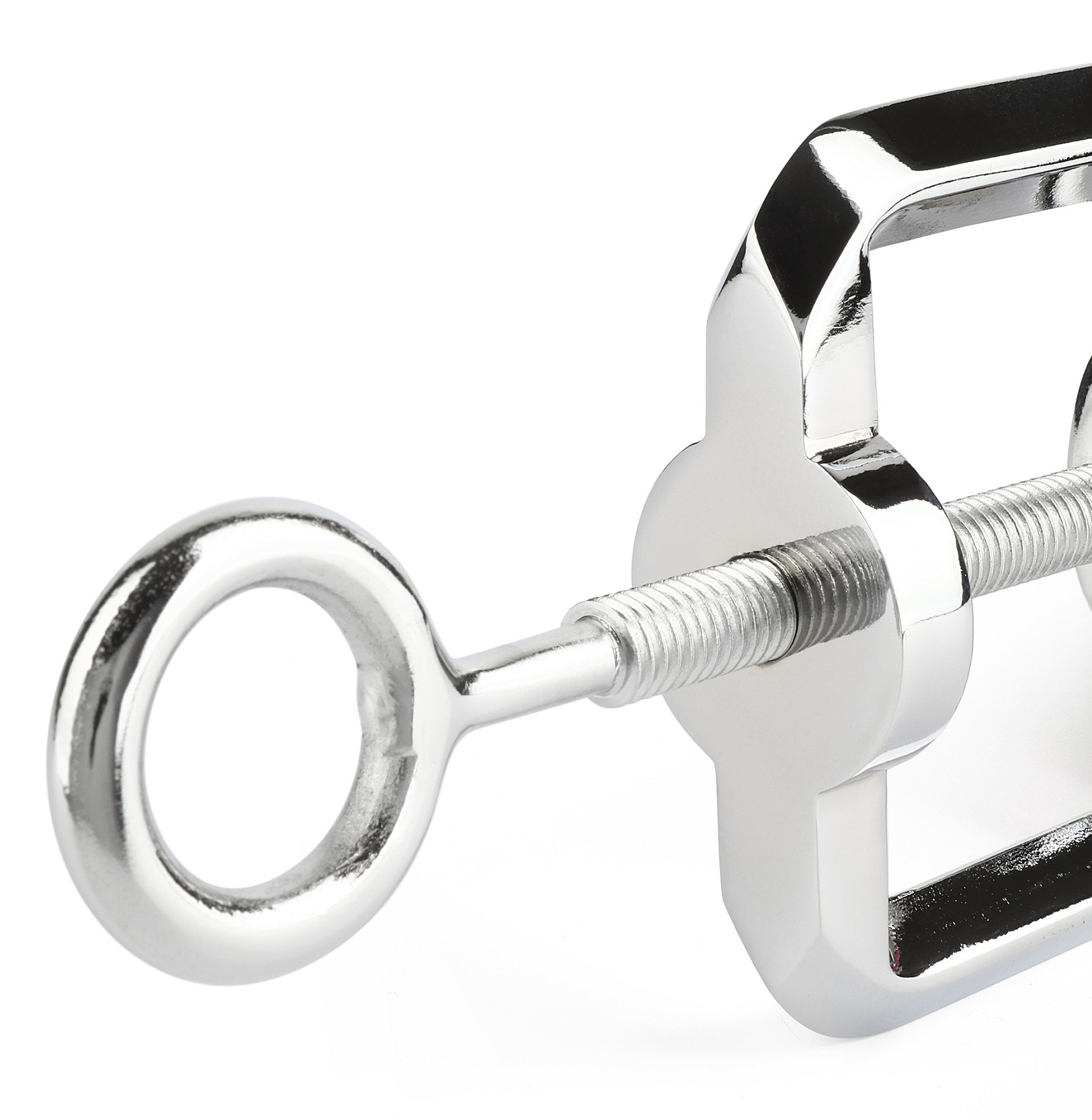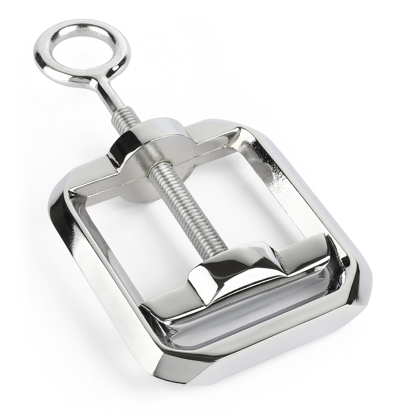 Accessoire pour écraser le scrotum ou les bourses.Avec une vis centrale permettant d’ajuster le serrage en fonction de l’envie.Ouverture maximale de 5.5 cm. En métal acier inox.