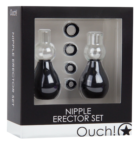 Ce set est composé de 4 jeux d’élastiques qui se placent sur les tétons, qui les serrent et les rendent très sensibles.Les diamètres des élastiques sont de 5mm, 6mm, 8mm et 10mm.Ils se placent grâce aux tubes qui aspirent les tétons.