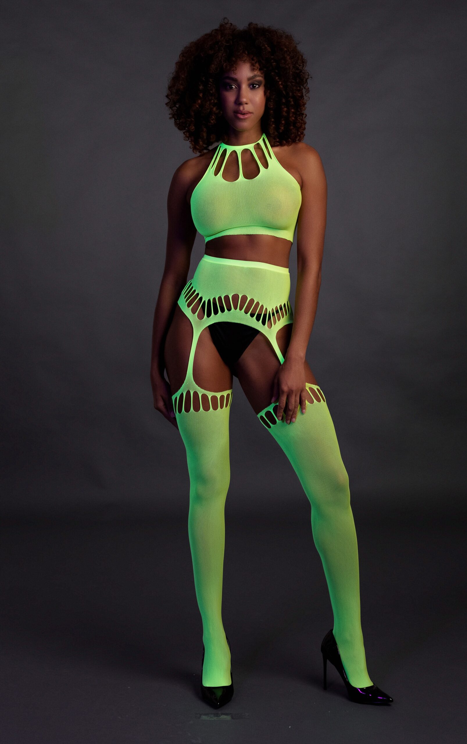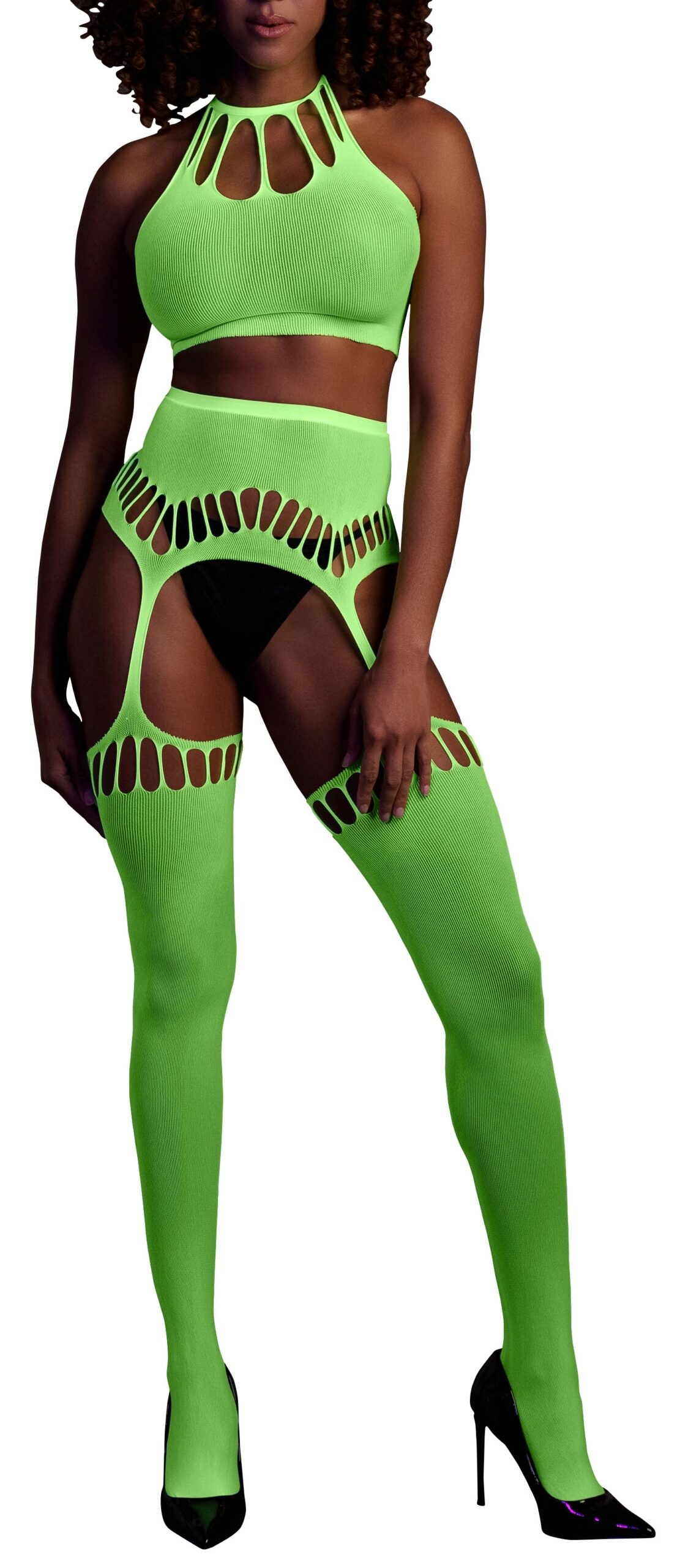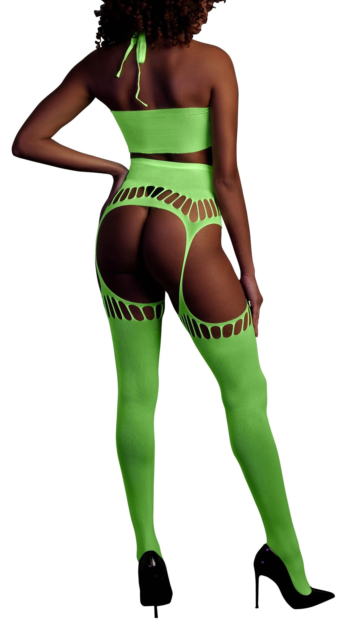 Ensemble Bustier Dos nu et Porte-Jarretelles 2 Pièces Vert Fluo