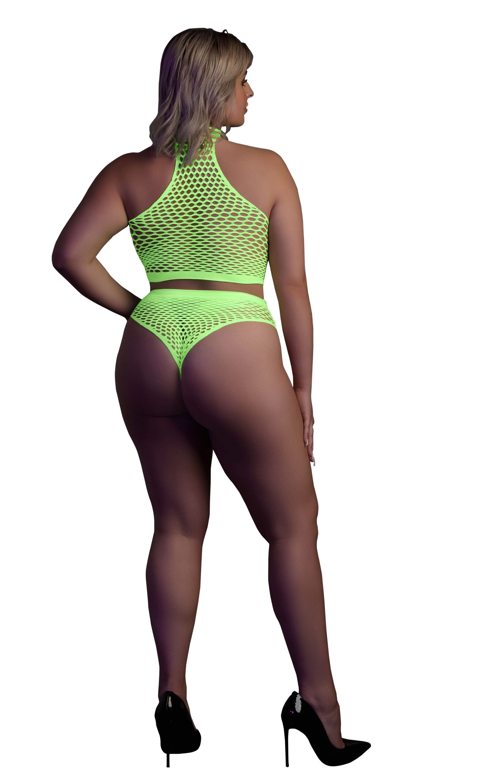 Ensemble Bustier et Culotte Filet Vert Fluo