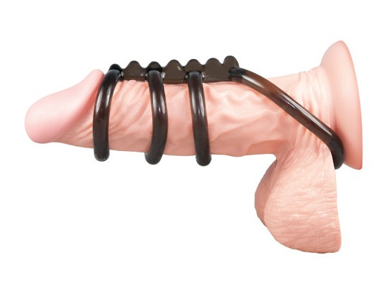 Cet étui pour le pénis possède une forme originale.Il est composé de: Un anneau principal de 45mm de diamètre 3 anneaux de 25mm de diamètre qui viennent serrer le sexe en érection Un relief dentelé sur le dessus qui donne des sensations supplémentaires lors de la pénétration Une longueur de 6.5cm Il est idéal pour renforcer l’érection et donne plus de plaisir. Fabriqué en TPE flexible