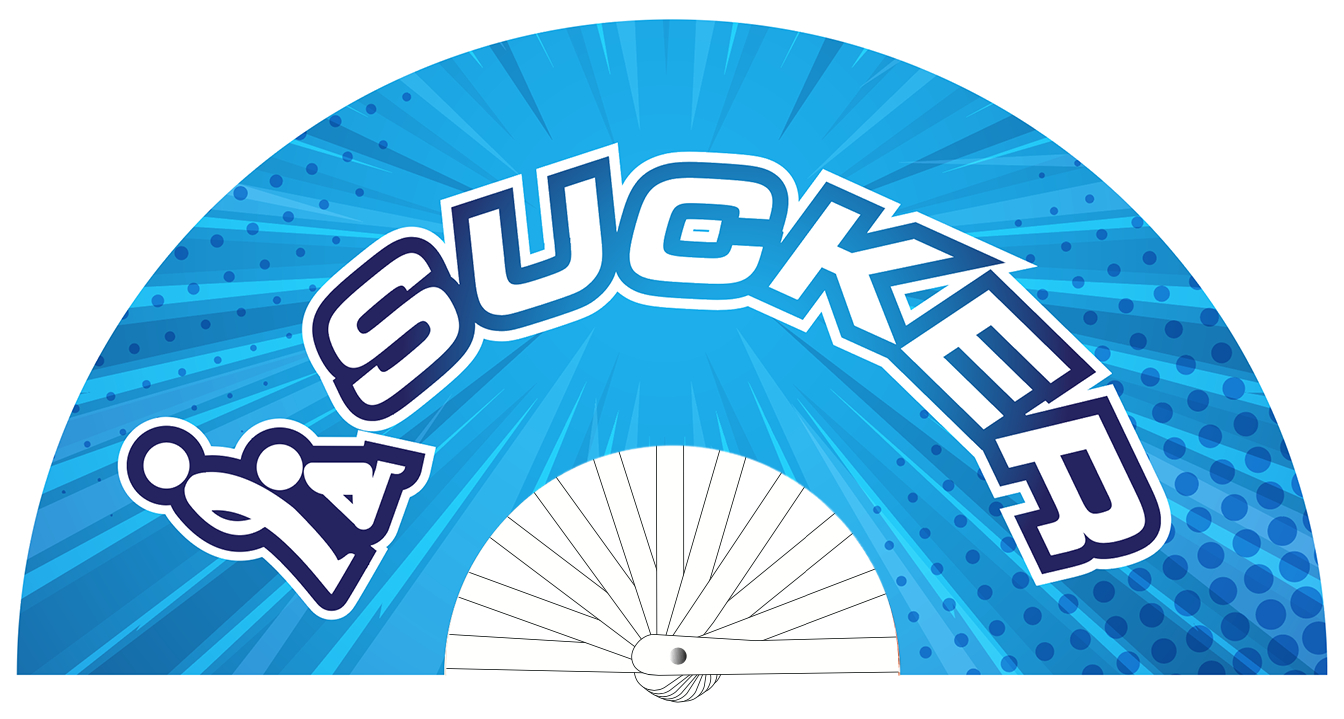 Éventail d’une envergure de 64 cm pour une hauteur de 34 cm. En polyester et plastique.