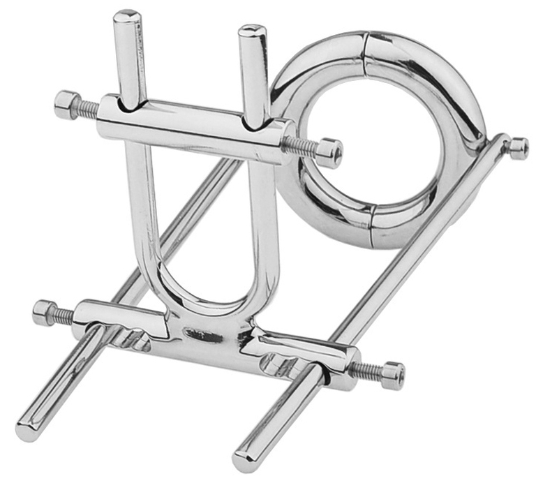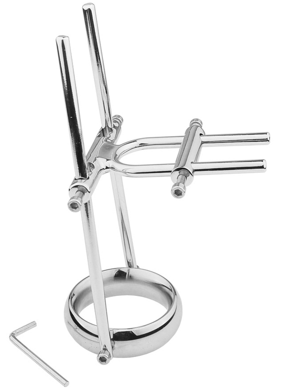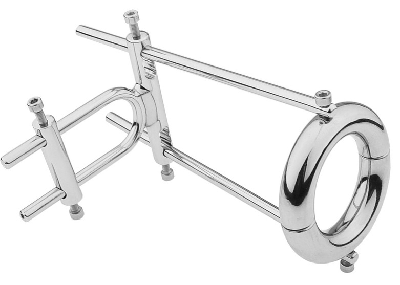 Cet extenseur de pénis en métal est conçu pour agrandir le sexe de façon mécanique.Il possède un anneau de 40 mm de diamètre à placer sur la base du sexe. Les branches mesurent 16 cm maximum.Avec un espace pour placer l’extrémité du pénis (2.5 x 4.5 cm). Avec clé allen pour ajuster les écartements.