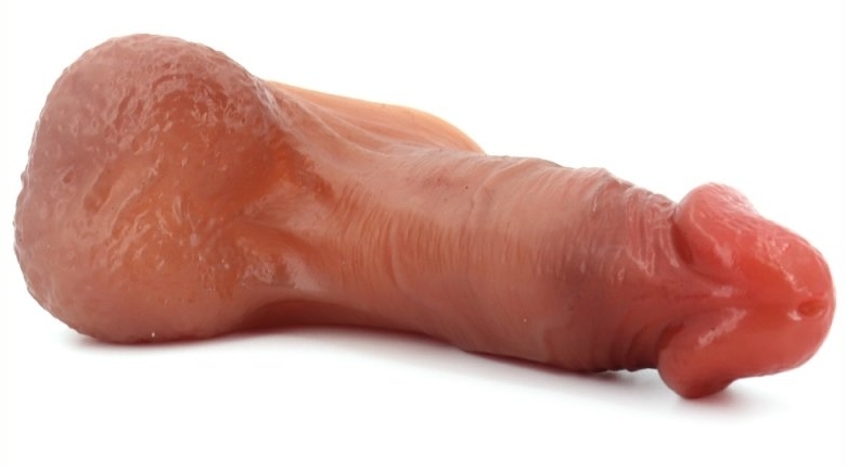 Cette gaine souple est conçu comme un pénis avec une longueur de 10cm et une largeur de 4cm.Le gland est décalotté. Intérieur de 11 x 3cm. En silicone
