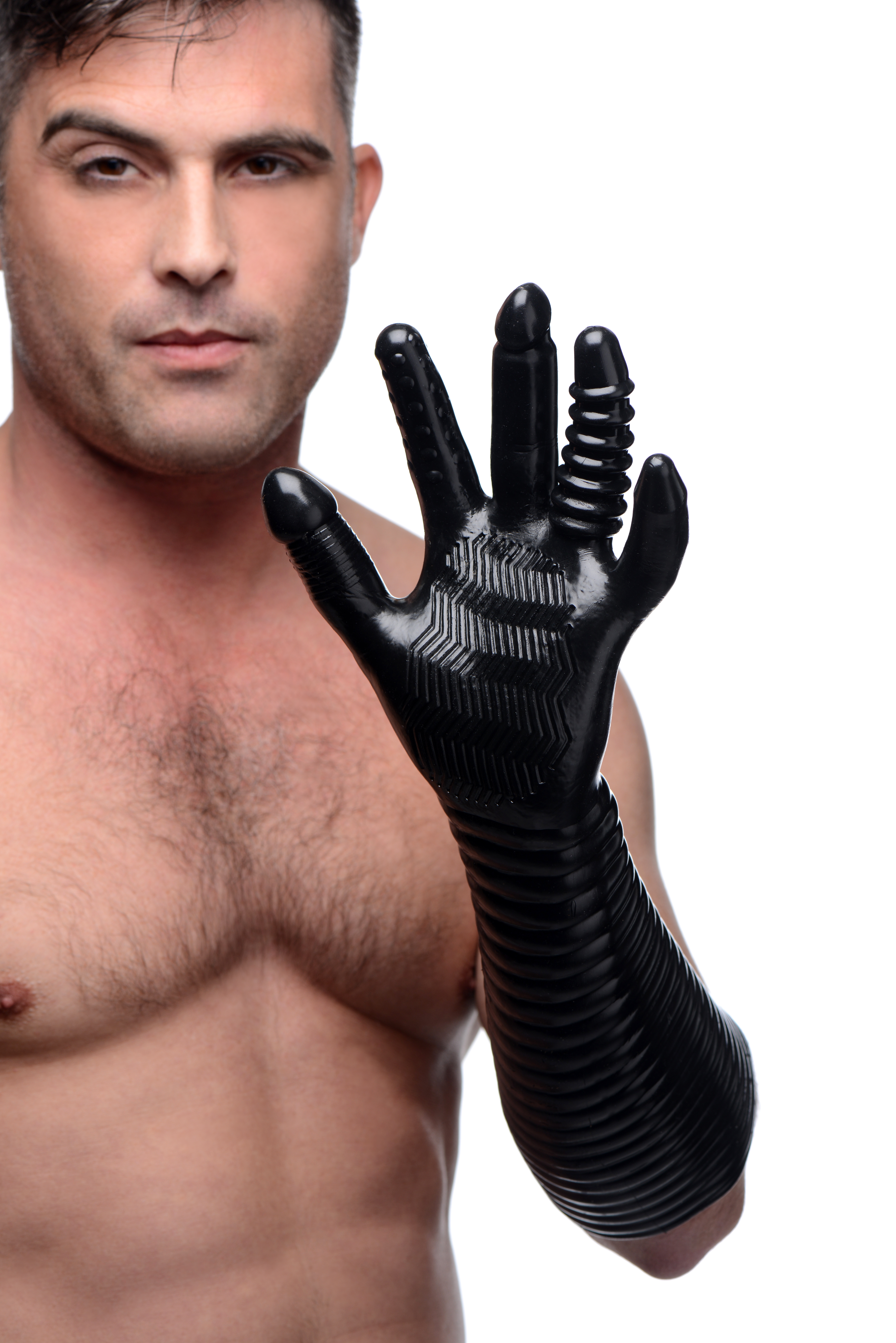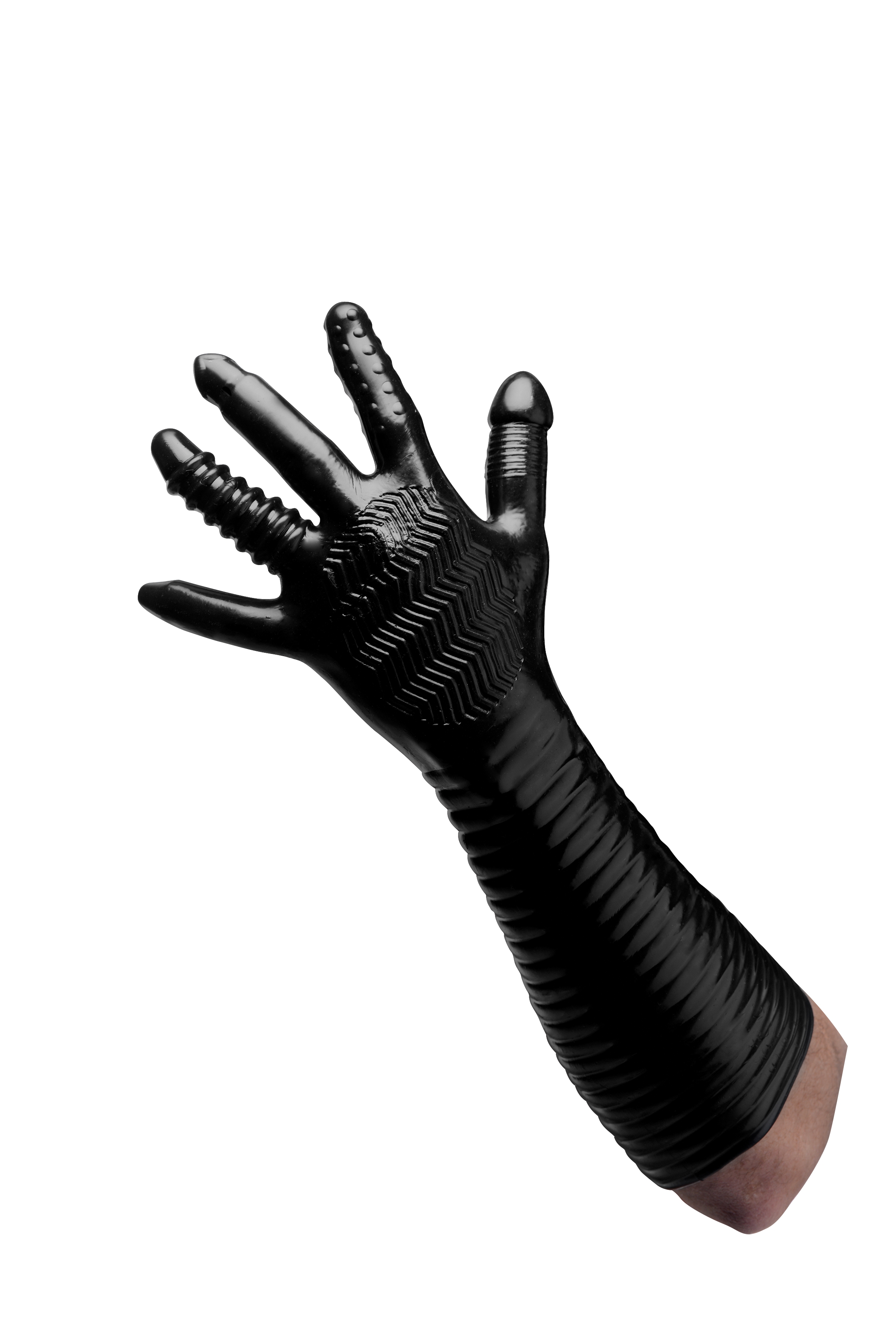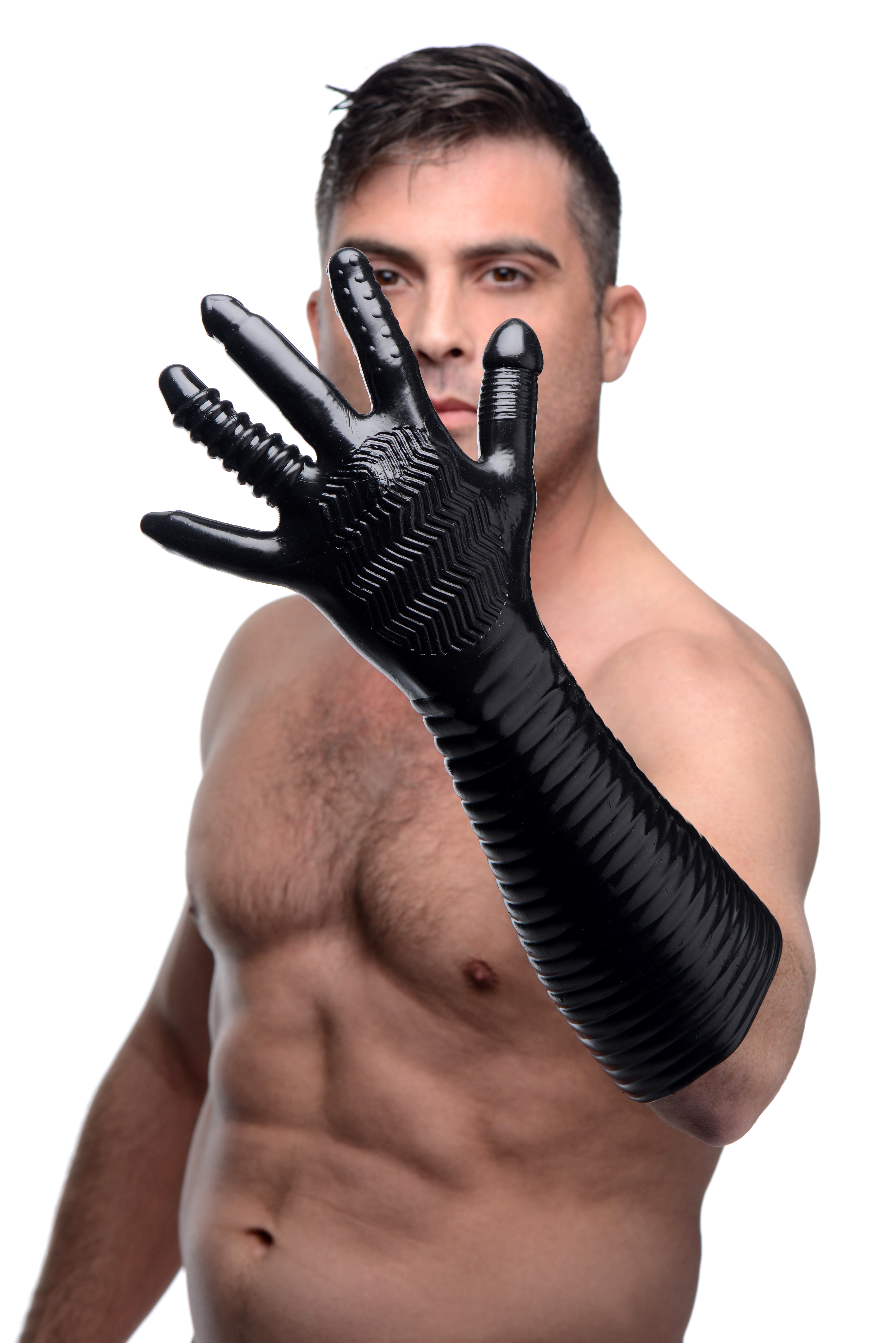 Ce gant long est texturé pour des moments de jeux encore plus excitants.Il est composé d’une surface en zig-zag sur la main et des nervures sur le bras.Chaque doigt possède une texture: lisse, nervurée, forme phallique, avec points bulles et forme de plug. La matière TPR est souple.Appliquer de la fécule de maïs sur la main et bras avant usage