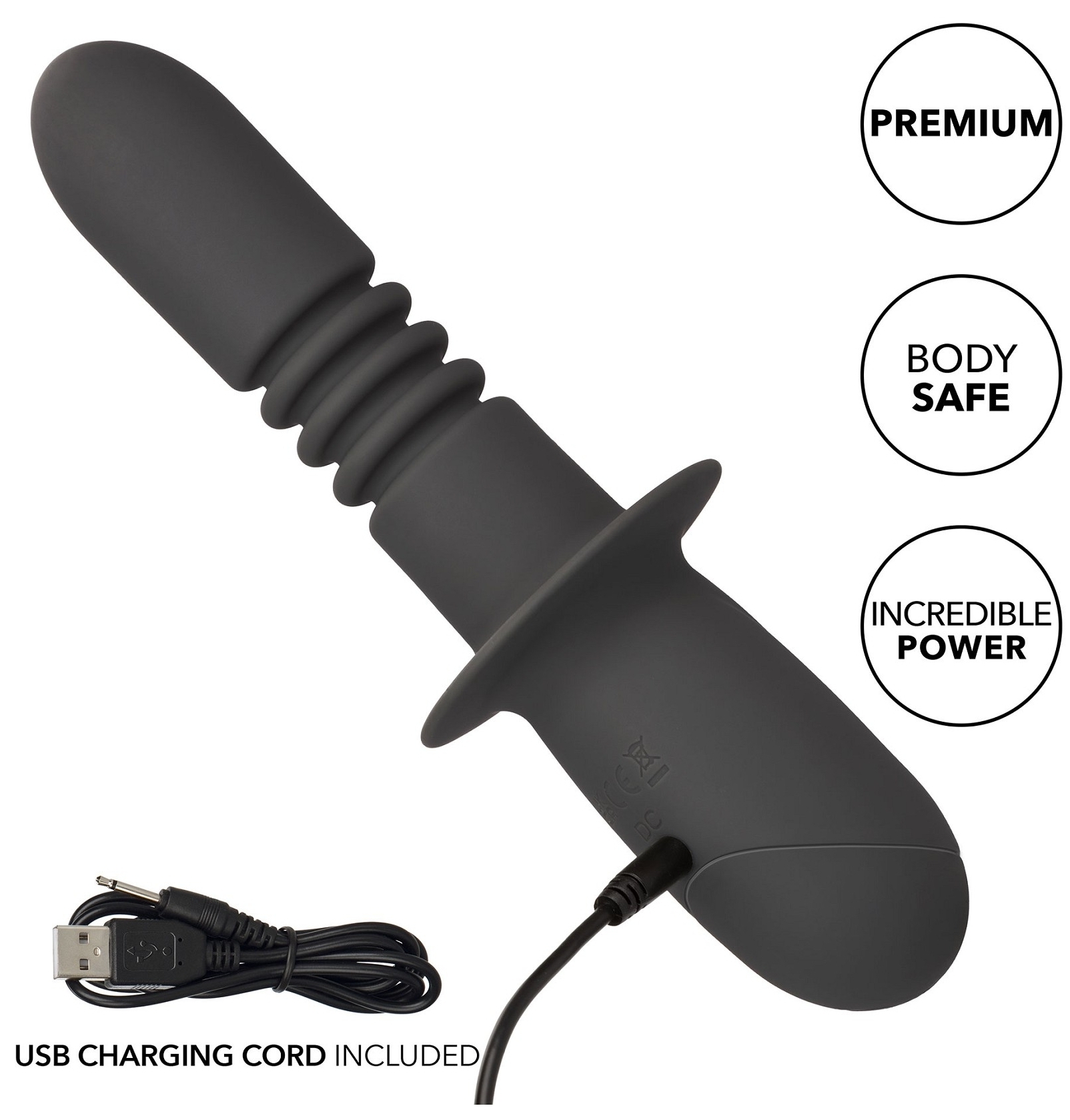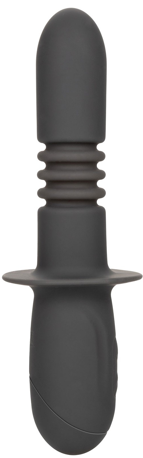 Gode à Poussée avec Poignée 12 modes de vibrations 12 modes de poussée Puce mémoire et verrouillage Étanche Longueur augmentée de 3 cm grâce à la poussée. Longueur insérable de 11 à 14 cm. Largeur maximale de 3.2 cm. En silicone