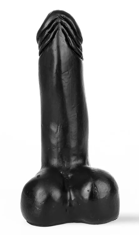 Longueur insérable de 11 cm et largeur maximale de 3.5 cm. Il est réalisé avec une forme réaliste, un gland décalotté et les plis du prépuce en dessous.Base avec les bourses. En PVC.