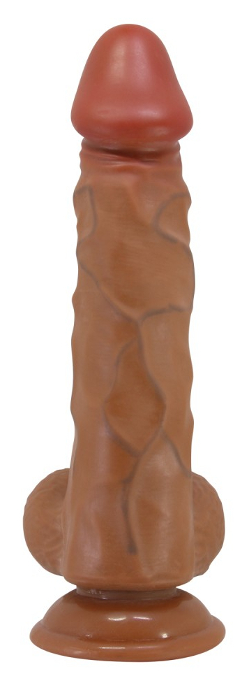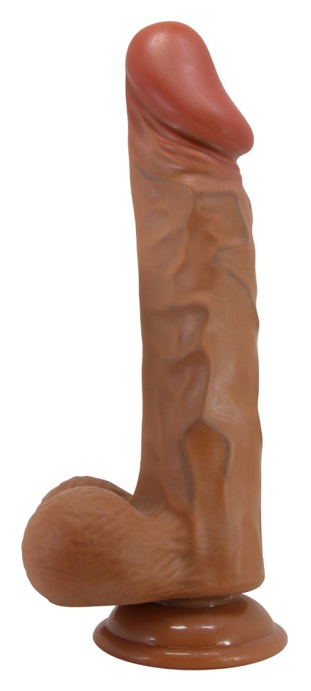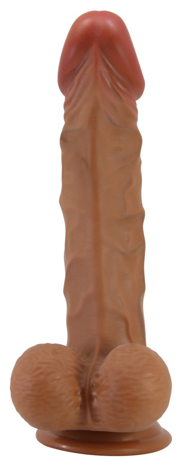 Gode de forme droite avec gland décalotté et surface texturée. Longueur insérable de 18 cm et largeur de 3.5 à 4.5 cm. En TPR, avec base ventouse.