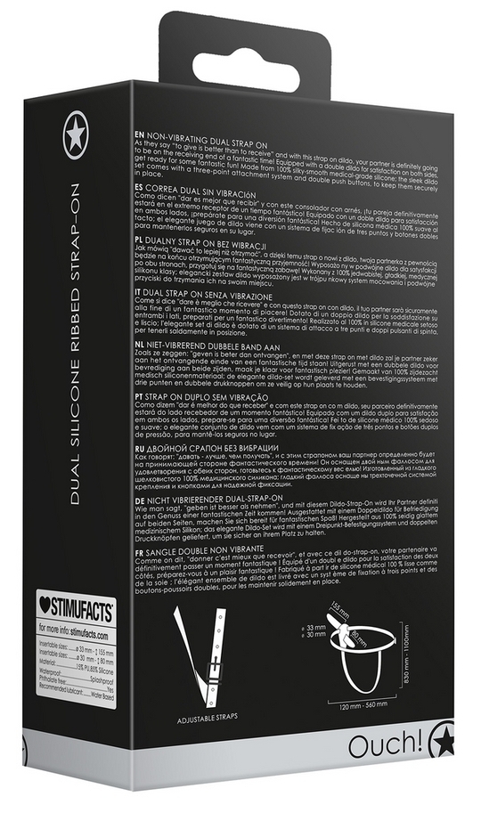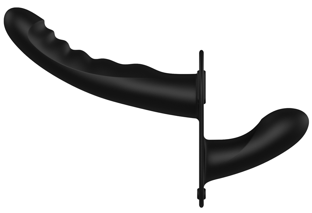 Gode ceinture double Dual Ribbed 15 x 3.3cm Noir