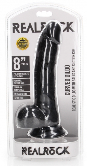 Le gode Curved est un sextoy de la marque RealRock conçu avec une forme réaliste et une légère courbure.La longueur insérable est de 17cm. La largeur maximale est de 4.3cm. Avec une surface veinée et une ventouse. En PVC souple