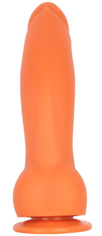 Gode orange, avec un léger relief. Longueur insérable de 17 cm et largeur de 4.2 à 4.5 cm.En silicone.