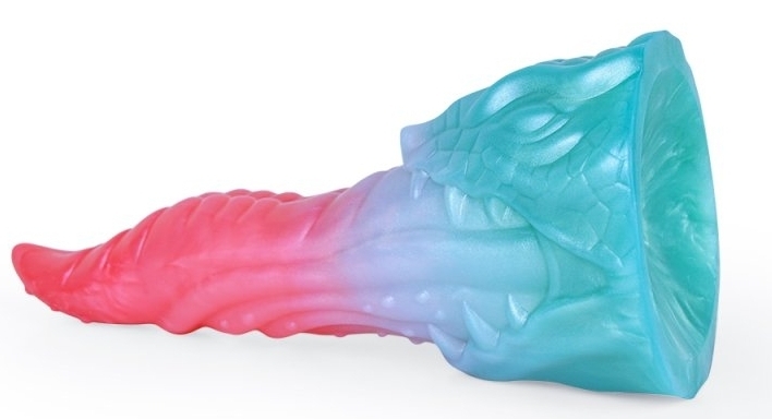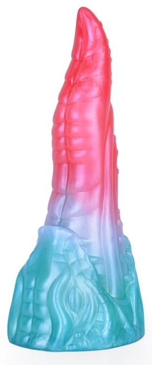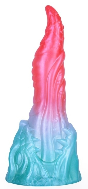 Gode monster en forme de langue à la surface texturée Muni d’une base ventouse Longueur insérable de 14 cm. Largeur max de 4.5 cml. Gode en silicone.