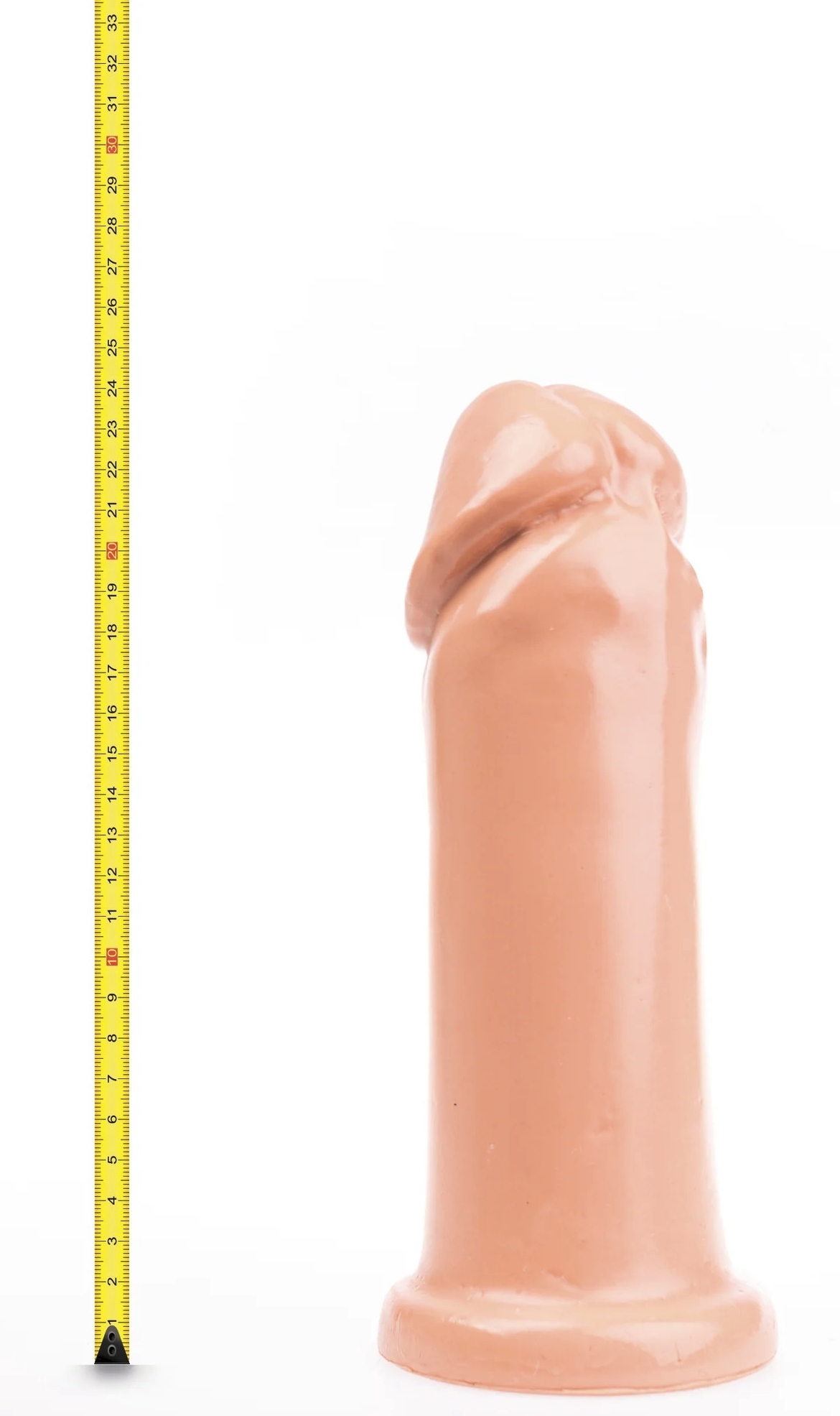 Gode avec une forme volumineuse, une longueur insérable de 23 cm et un gros gland de 7.5 cm de largeur. Avec une base compatible avec Hung System, Hung Lock et Vac-U-Lock. Fabriqué en PVC sans phtalates.