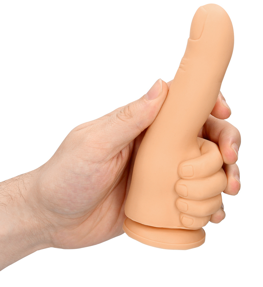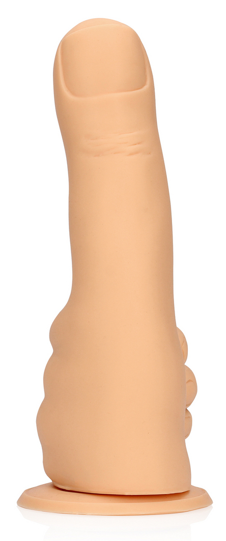 Gode en forme de pouce avec base ventouse. Longueur insérable de 9 cm et largeur de 3 cm. En silicone