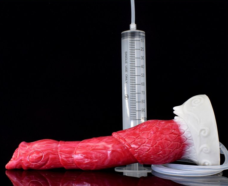 Le gode éjaculateur Finn Uhr est un sextoy composé avec une forme rappelant les contours d’un pénis de chien. Il est réalisé avec une longueur insérable de 20cm, une largeur allant de 2.8 à 4.8cm et une surface texturée. La seringue et la poire permettent de projeter plus facilement un liquide..Avec une base ventouse. En silicone