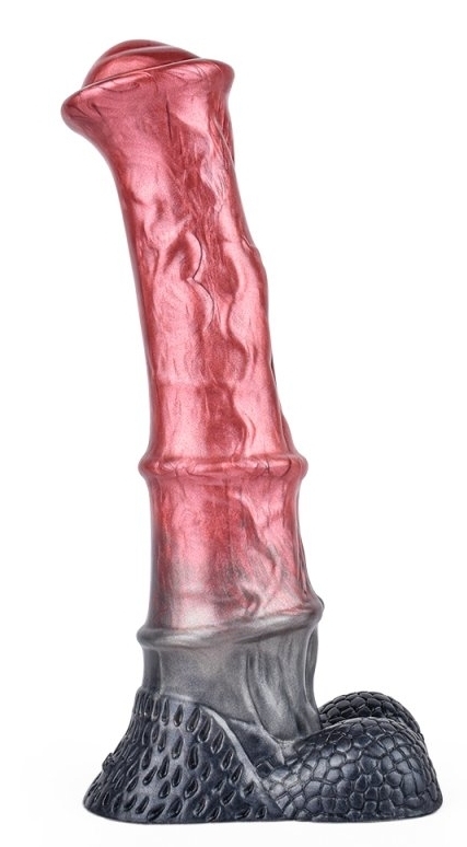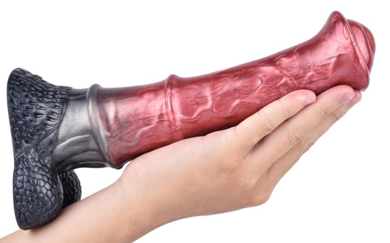 Gode en forme de sexe de cheval. Longueur insérable de 22 cm. Largeur maximale de 5.5 cm. Avec une base ventouse. En silicone