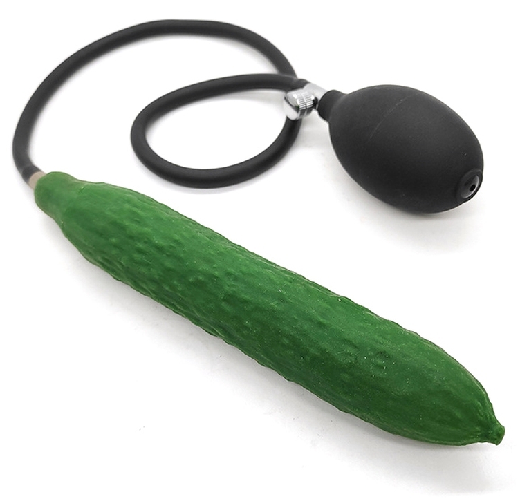 Le gode Concombre est un sextoy conçu avec la forme du légume.Il a une longueur de 18cm et une largeur allant de 3.5 à 4.5cm. Avec le gonfleur amovible. En silicone