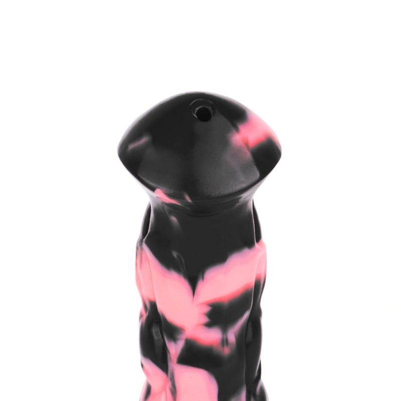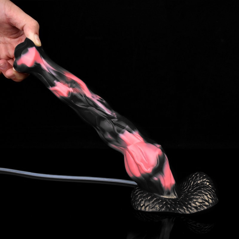 Gode avec une forme Cheval et une couleur Rose-Noir.Effet éjaculateur. Longueur insérable de 20 cm. Largeur de 5 à 6 cm. Avec une base ventouse. En silicone