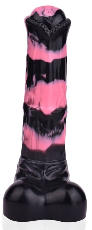 Gode zoo, à la forme équine, doté d’une base ventouse et de bourses rondes. Longueur insérable de 18 cm et largeur de 4 à 4.7 cm Ce sextoy est en silicone noir et rose.