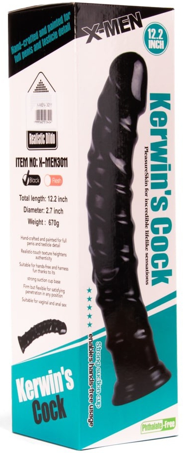 Le gode Kerwin est un sextoy conçu avec une forme originale. Il apporte des sensations très excitantes grâce à sa surafce fortement en relief.La longueur insérable est de 30cm et la largeur est de 5.3cm. Avec une structure souple et une ventouse. Fabriqué en PVC