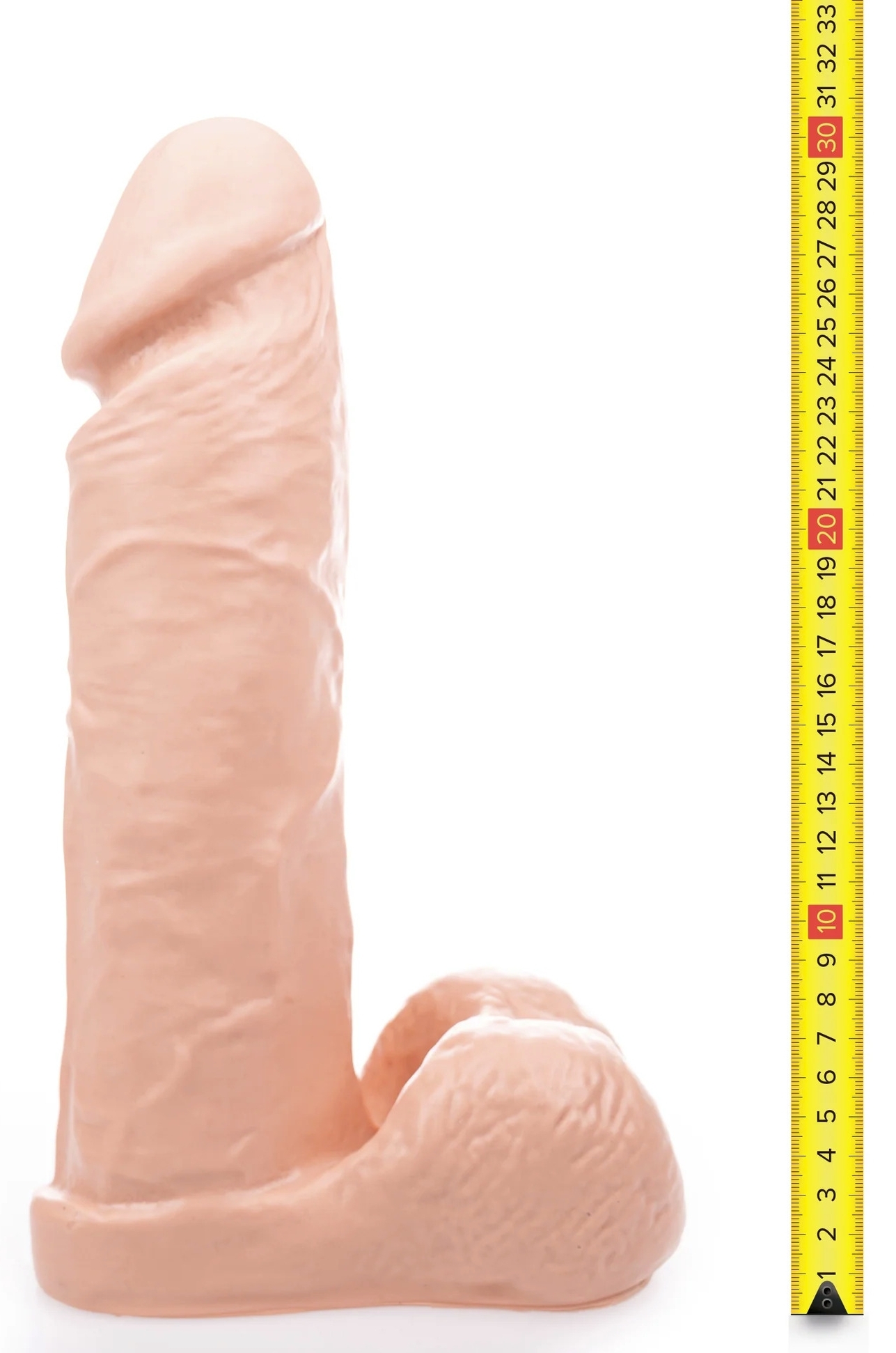 Gode avec une forme réaliste et des dimensions importantes. La longueur insérable est de 28 cm. La largeur maximale est de 8 cm.Avec une base ventouse amovible. En PVC sans phtalates.