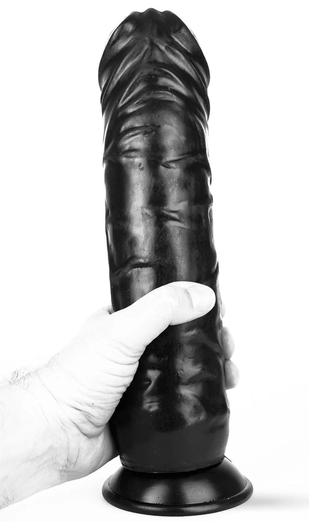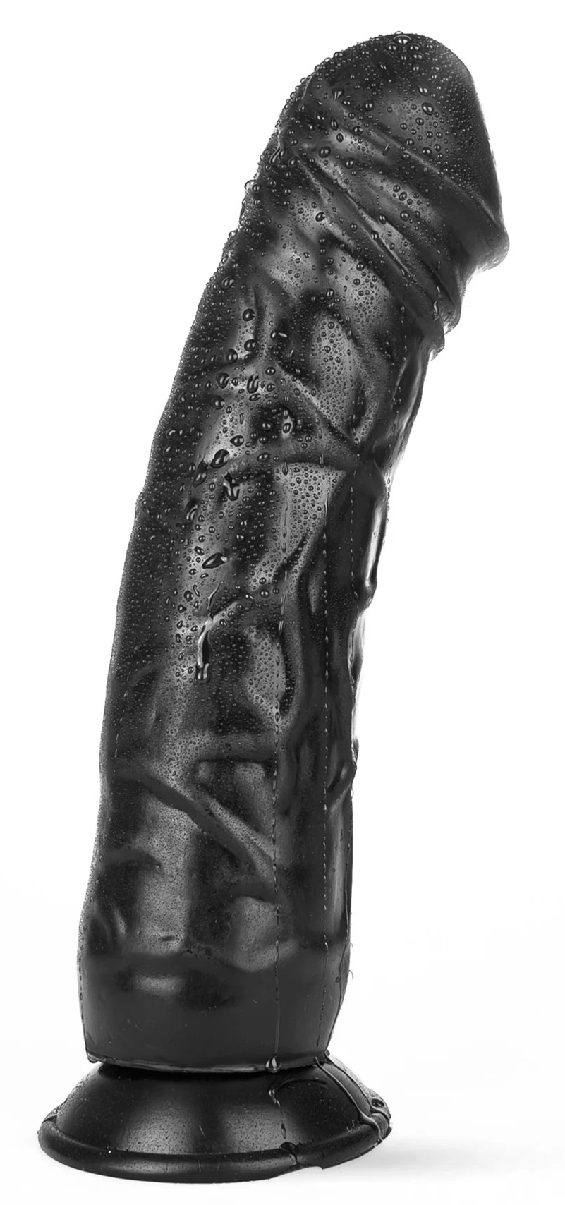 Gode de 30 cm de longueur insérable avec une largeur maximale de 7.5 cm au niveau du gland.Avec un gland décalotté et une surface veinée. En PVC