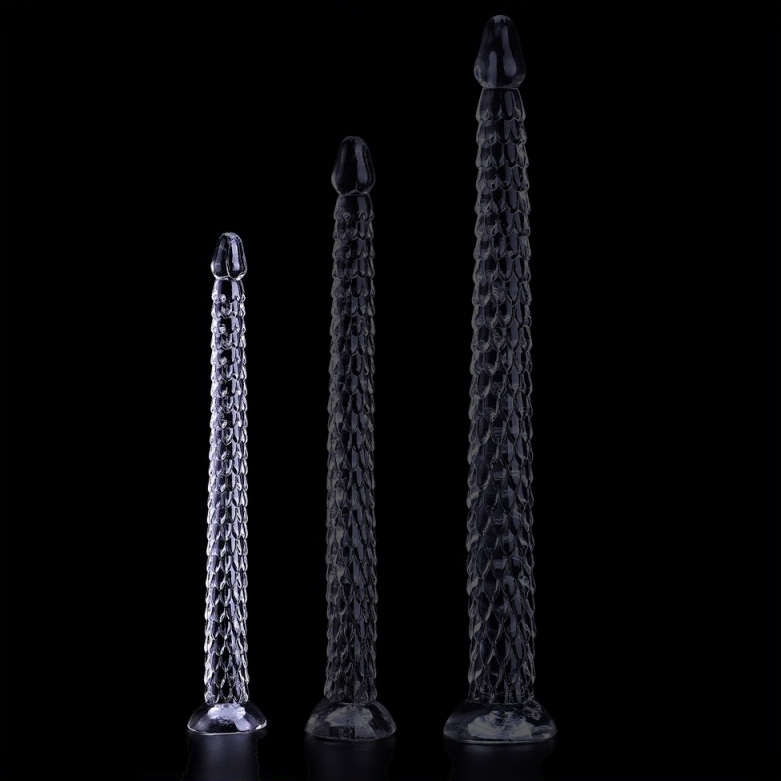 Le gode transparent Armak S est un sextoy conçu avec une structure souple et une surface entièrement texturée comme des écailles.La longueur est de 38cm.La largeur est progressive et va de 2.5 à 3.5cm. Avec une base ventouse. En matière TPE souple