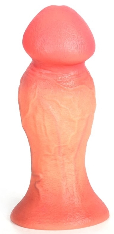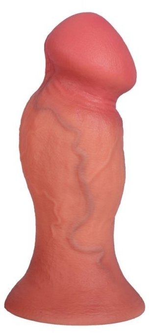 Gode avec un gland décalotté et une large proéminence avec une surface texturée. Base ventouse. En silicone.