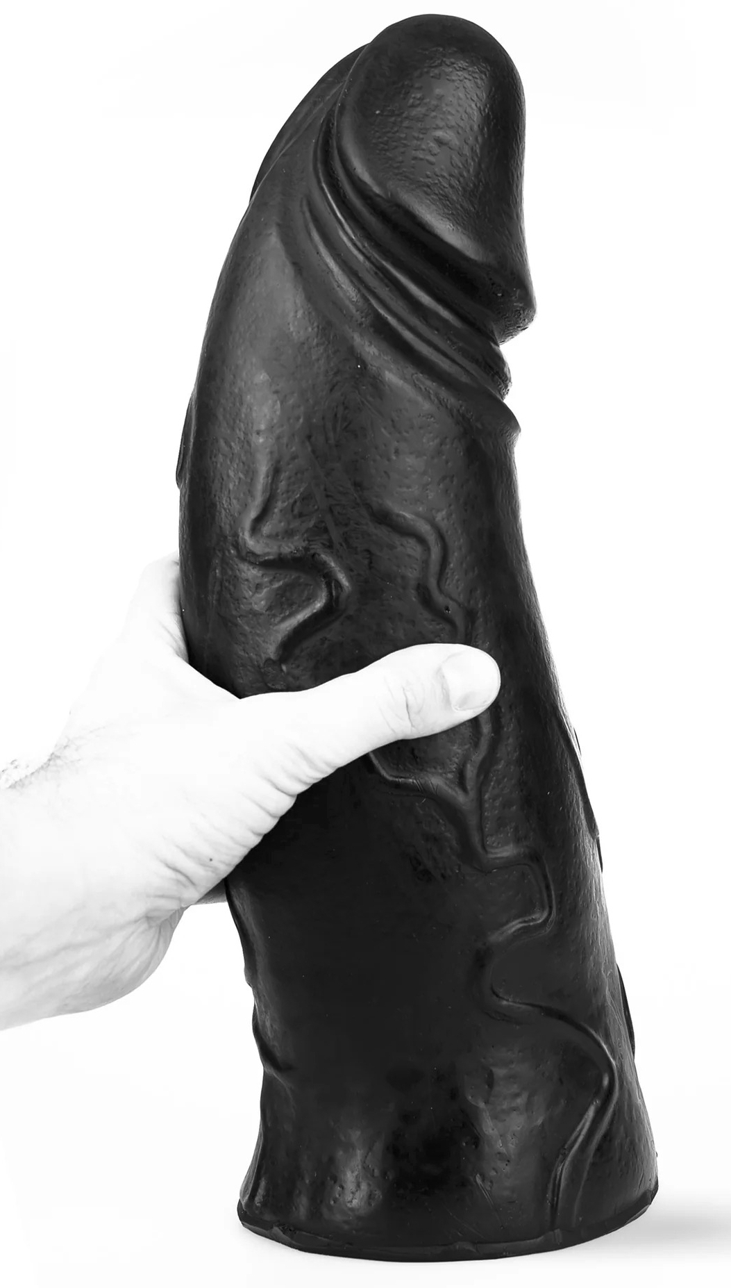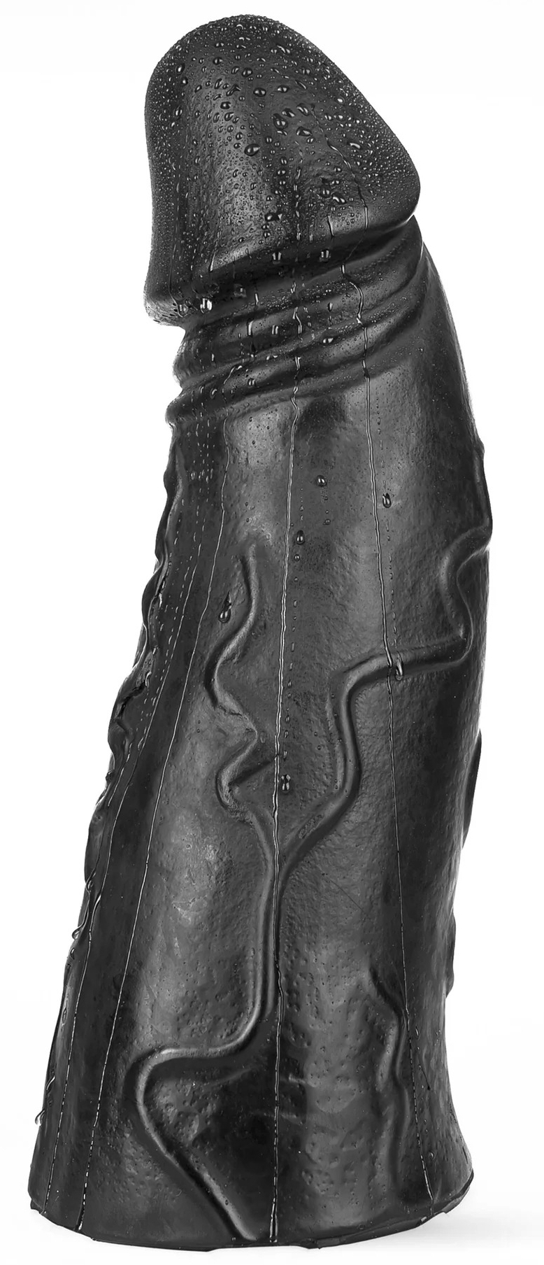 Le gode Odin de Dark Crystal est conçu avec une forme courbée à l’extrémité et des volumes importants. La longueur insérable est de 36 cm. La largeur va de 6.5 cm à 12.5 cm.La largeur du gland est de 10 cm. Avec une surface veinée et une base plate. En PVC