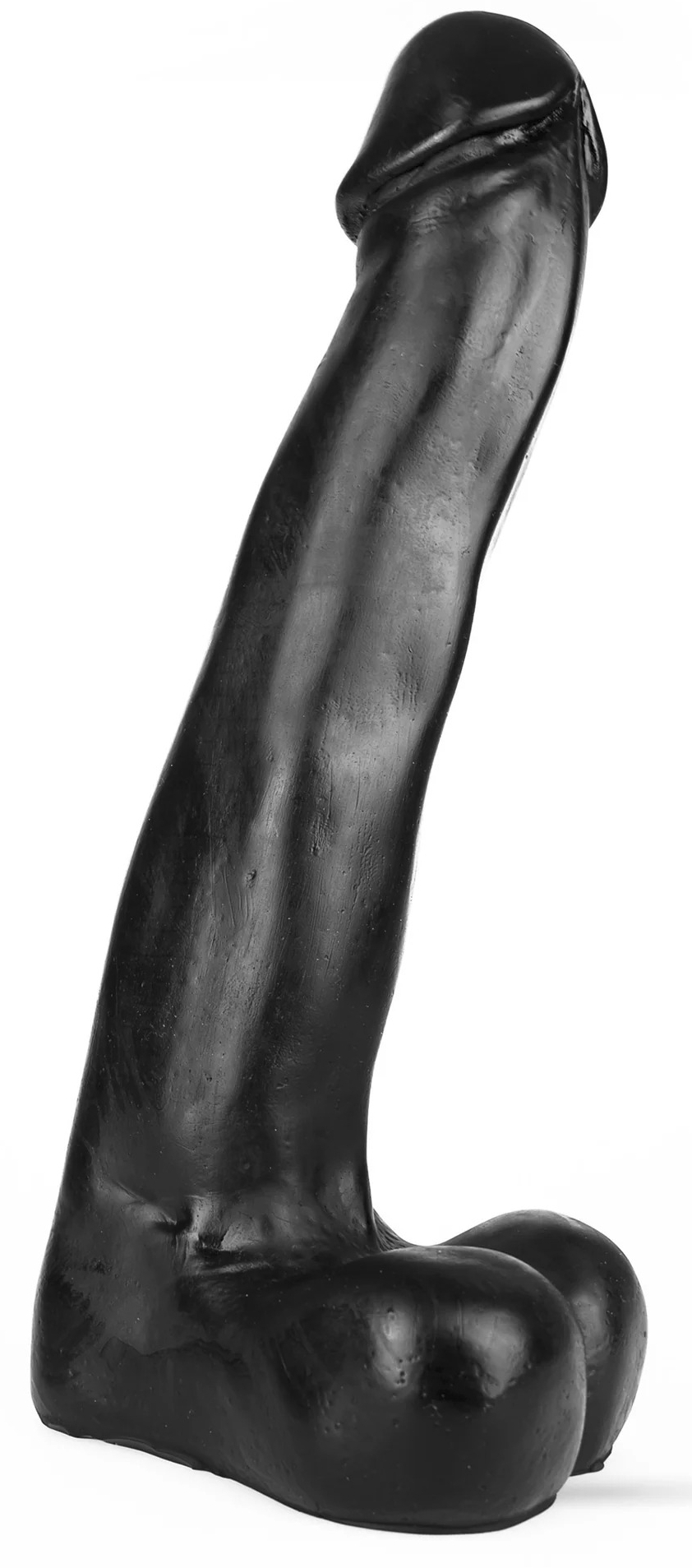 Gode avec une forme réaliste et des proportions importantes.La longueur insérable est de 32 cm. La largeur commence à 4 cm et atteint 7.5 cm.Avec la forme des bourses sur la base. En PVC