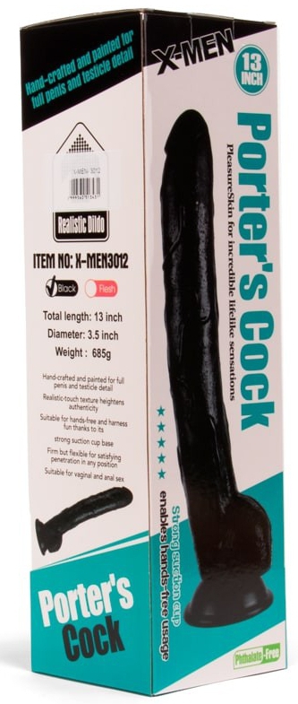 Ce gode Porter’s Cock est un sextoy de la gamme X-Men. Il est réalisé avec une forme réaliste et des dimensions plus importantes permettant des sensations intenses.Il a une longueur insérable de 25cm et une largeur maximale de 4.7cm.La surface est légèrement veinée. Avec une base ventouse. Il est fabriqué en PVC