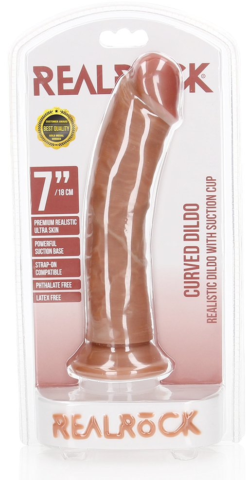 Le gode Curved Dildo est un sextoy de la marque RealRock conçu avec une forme légèrement courbée et une surface veinée.La longueur insérable est de 18cm. La largeur est de 4.2cm. Il a une base ventouse. Fabriqué en PVC
