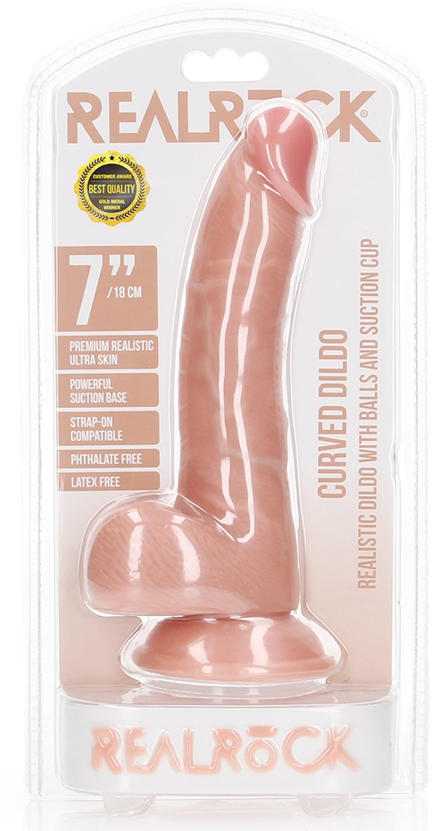 Le gode réaliste Curved Kurt de la marque RealRock est un sextoy idéal pour des plaisirs excitants.Il se compose d’une forme courbée avec un gland décalotté.La longueur insérable est de 15cm et la largeur est de 3.7cm. Avec une base ventouse. En PVC