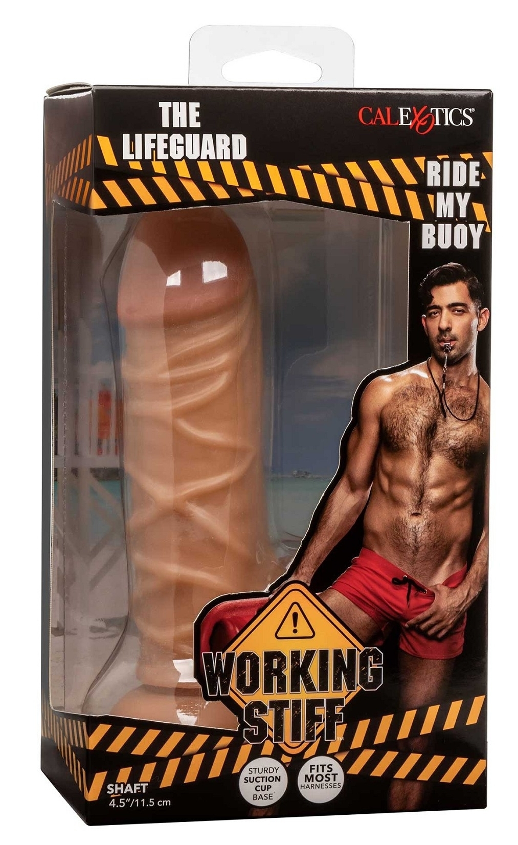 Gode réaliste d’un pénis de sauveteur en mer, de type méditerranéen. Gland décalotté, surface veinée et bourses plissées. Base ventouse. Dimensions : Longueur de 11 cm. Largeur de 3.8 à 4 cm.