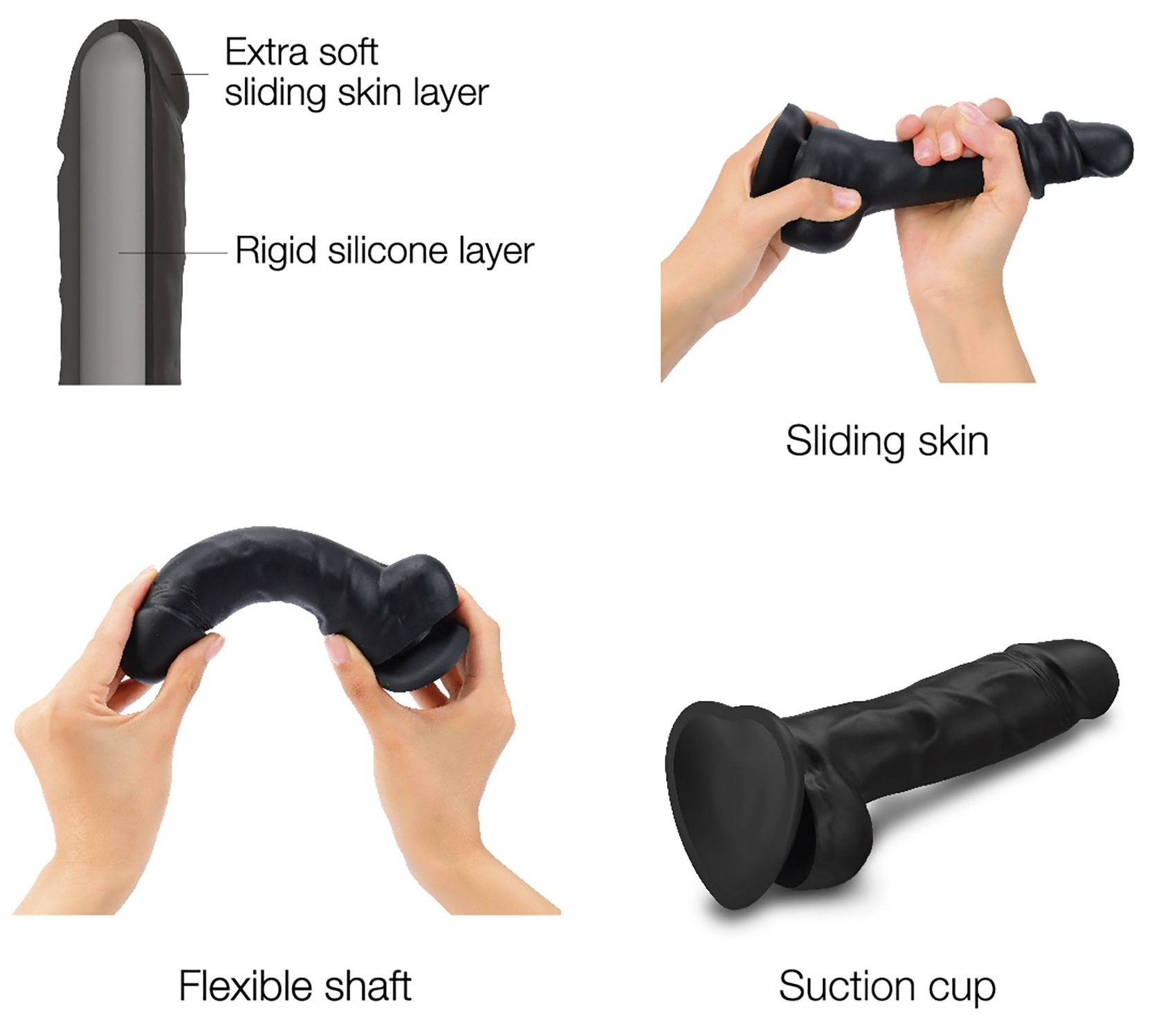 Le gode noir Sliding Skin de la gamme Strap-On-Me estconçu avec une forme réaliste et une surface qui se plisse.Sextoy remarquable pour un jeu excitant. La longueur insérable est de 15.5cm.La largeur est de 4.3cm. La structure est à la fois souple et ferme. Avec une base ventouse En silicone
