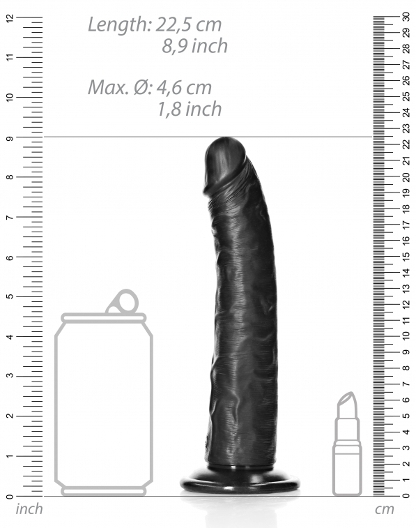 Ce gode de la gamme Slim est un sextoy de la marque RealRock. Il se compose d’une longueur insérable de 20cm et d’une largeur allant de 3.5 à 4.6cm.Avec une forme réaliste. La base comporte une ventouse. En PVC