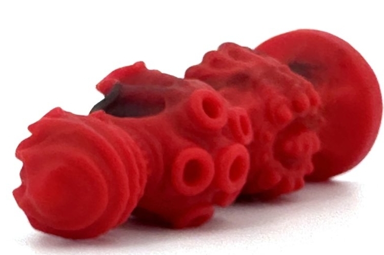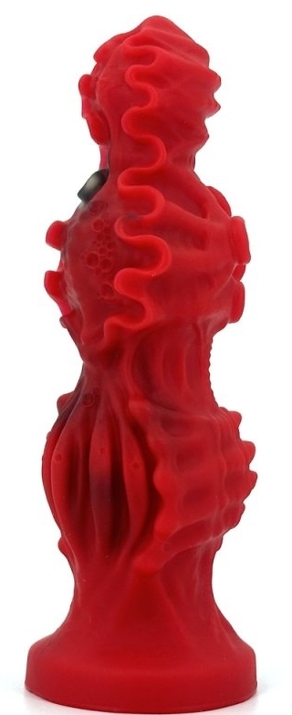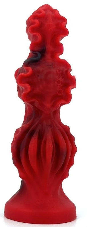 Gode avec surface texturée Longueur insérable de 11 cm et largeur de 2.4 à 3.6 cm. En silicone avec base ventouse
