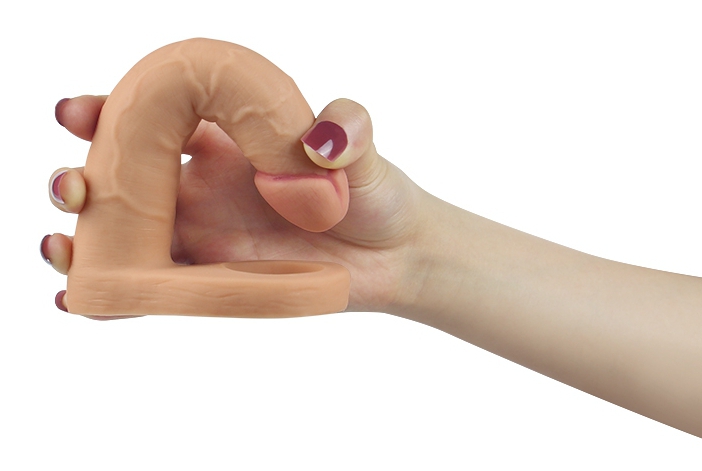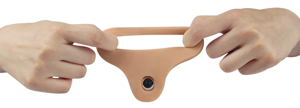Ce gode pour la double pénétration est composé d’une longueur insérable de 14cm et d’une largeur allant de 2.5 à 3cm.Il est réalisé avec une forme réaliste et fine se plaçant sur le pénis. Il dispose d’un vibro amovible à l’intérieur pour augmenter encore plus les sensations.