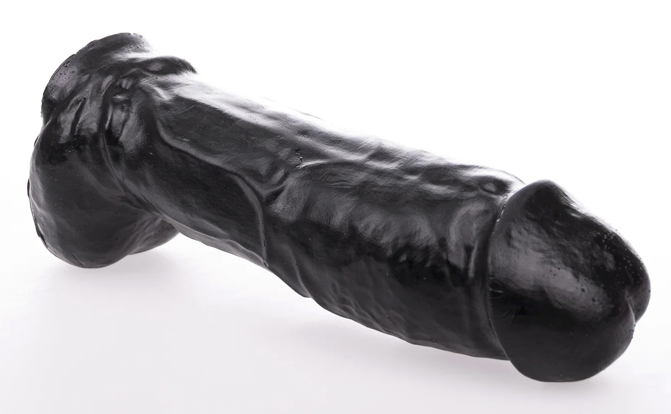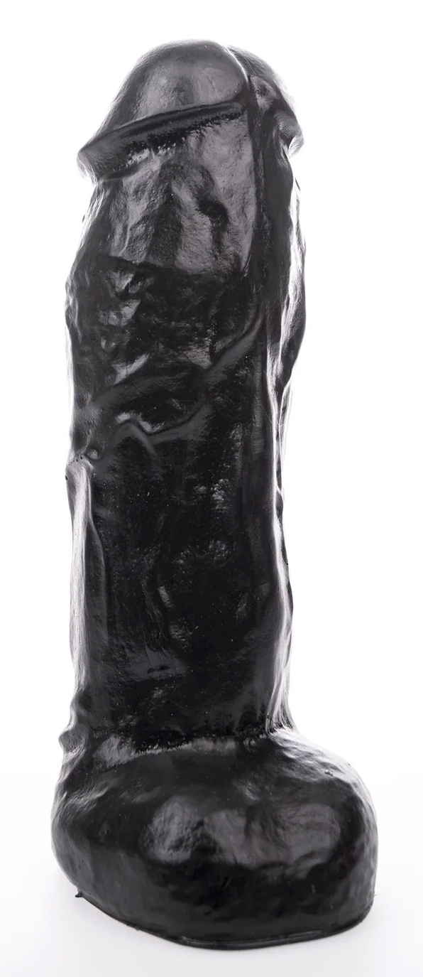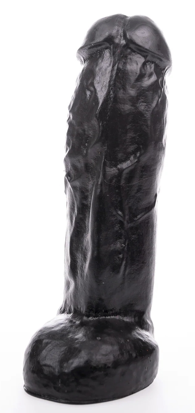 Gode noir avec un gland décalotté et surface texturée. Longueur insérable de 17 cm. Largeur maximale est de 6 cm Base ventouse amovible En PVC noir