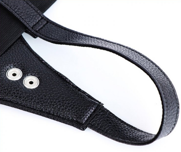 Ce harnais pour les godes ceinture est composé de : 3 anneaux en métal de 38, 45 et 50mm de diamètre la ceinture élastique à mettre autour de la taille. En simili