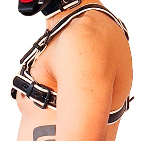 Ce harnais a une patte de chien en relief à l’arrière.Contraste noir et blanc.Avec des anneaux en métal à l’avant et à l’arrière. Les sangles sont ajustables. Tour de poitrine : S/M 90 à 105 cm – L/XL 92 à 112 cm. En simili (polyuréthane).