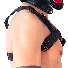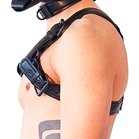 Ce harnais noir est réalisé avec une partie arrière comportant une patte de chien en relief.Les sangles sont ajustables. Avec des anneaux avant et arrière. Tour de poitrine : S/M 90 à 105 cm – L/XL 92 à 112 cm. En simili (polyuréthane).
