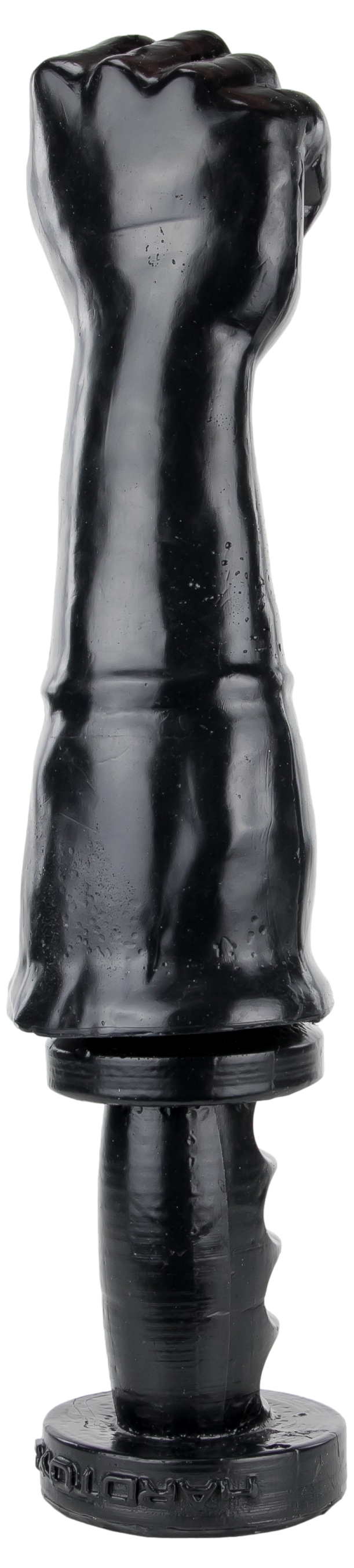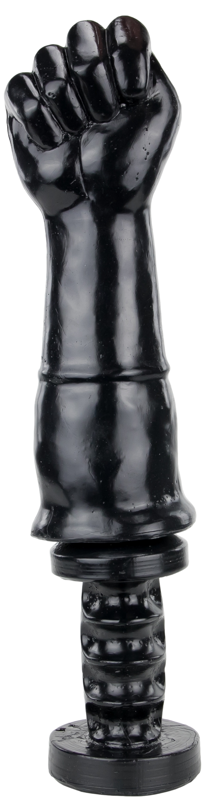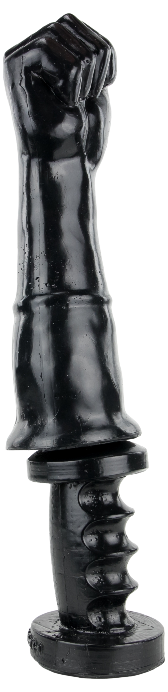 Le gode HOLD THE PUNCH est un sextoy de la gamme FIST IMPACT. Il est conçu avec une longueur insérable de 26cm et une largeur maximale de 9.5cm (sur le poing). La forme est réaliste avec un poing fermé et un bras dont la largeur est progressive. Les sensations sont excitantes lors de l’insertion. Avec une poignée pour une utilisation plus facile à 2. Il est fabriqué en vinyle de qualité