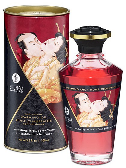 Contenue dans une sublime bouteille en verre, cette huile de massage Vin Pétillant à la Fraise que nous vous présentons fait partie de la collection Shunga.Aphrodisiaque et chauffante, elle peut-être appliquée sur l’ensemble du corps et permet de réaliser de sensuels et exquis massages érotiques qui éveillerons vos sens et votre désir.