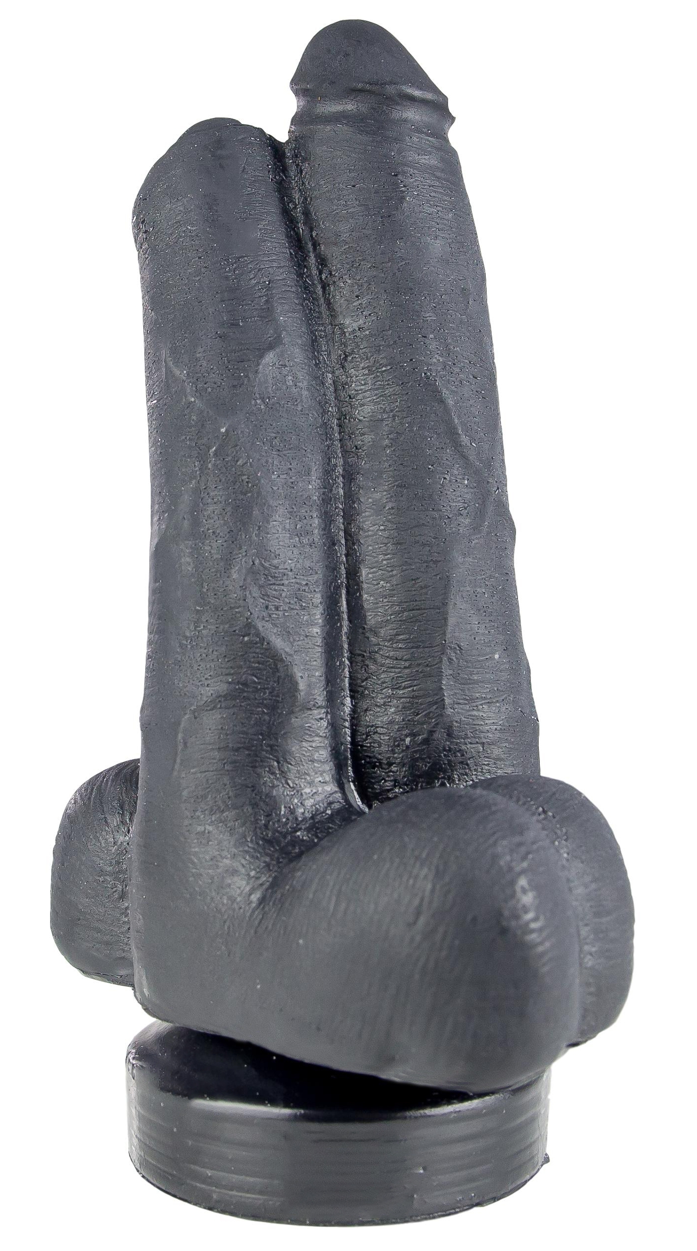 Le gode KEVIN & DYLAN est un sextoy de la marque HARDTOYS. Il est composé d’une longueur insérable de 16cm.La largeur (de face) est de 7.5cm maximum. La largeur de profil est de 4cm. La forme est composée de deux godes collés: l’un a le gland avec prépuce, l’autre possède le gland sans prépuce.Idéal pour simuler une double pénétration. En vinyle