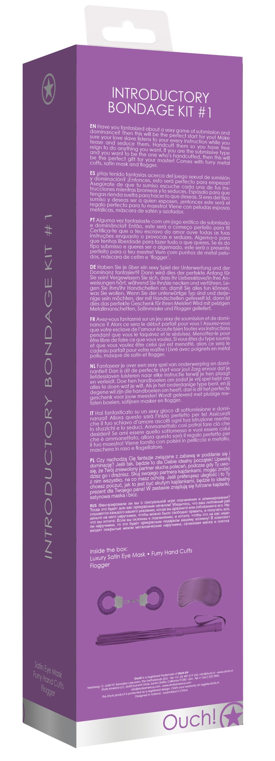 Ce kit d’introduction aux jeux SM de la marque Ouch! est un pack de 3 accessoires : le masque en satin pour cacher les yeux du partenaire et le mettre en position soumise le martinet en simili avec des lanières de 33cm les menottes en métal avec une fausse fourrure. Idéal pour découvrir les pratiques de soumission