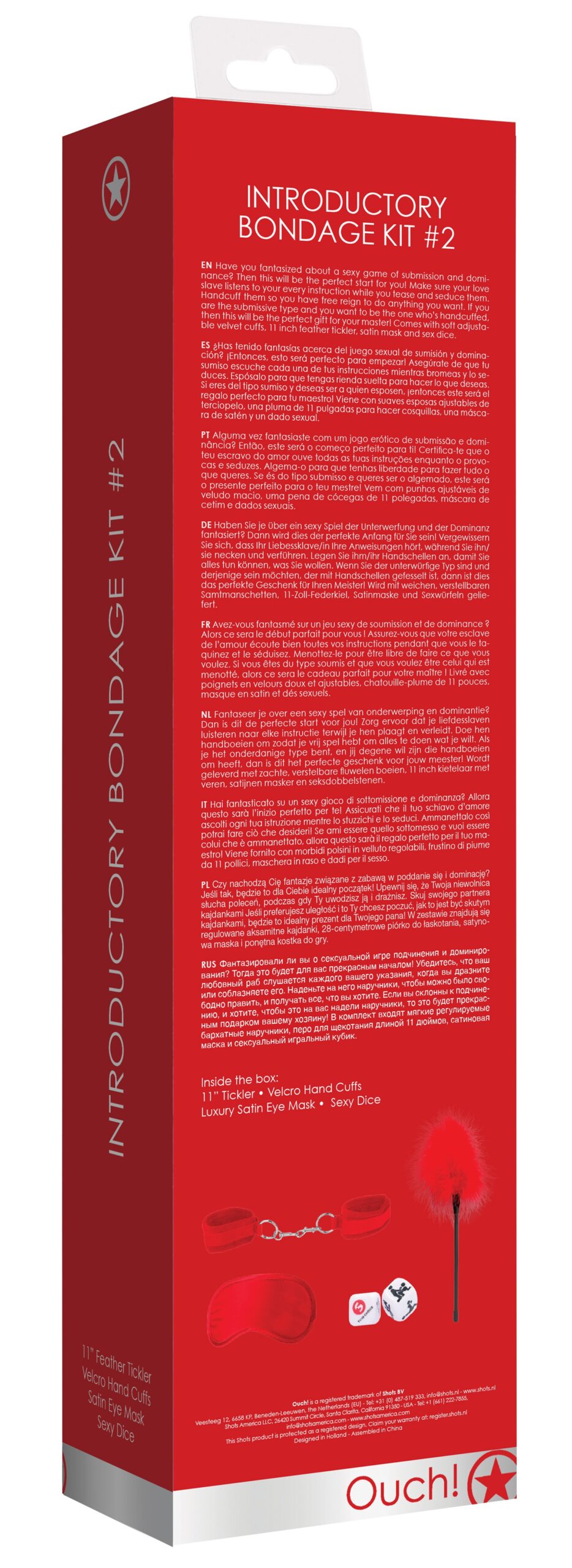 Ce kit BDSM est composé d’accessoires idéals pour découvrir les plaisirs de la soumission.Il se compose de : un masque en satin des menottes avec scratch et une chaîne en métal un accessoire pour faire des chatouilles des dés sexy.