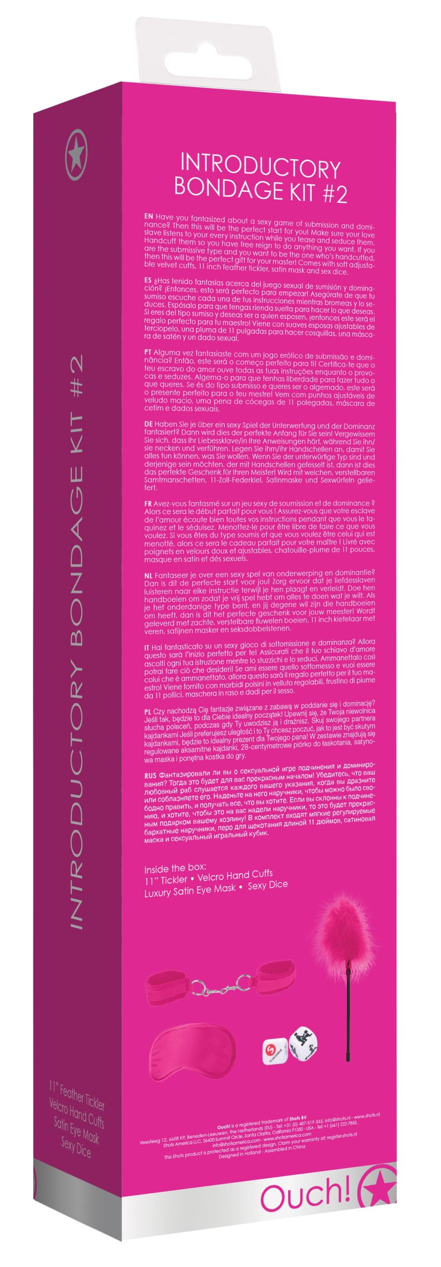 Le kit d’introduction au Sm N°2 de la marque Ouch! est composé d’accessoires idéals pour la soumission.Il se compose de : un masque en satin des menottes avec scratch un accessoire de chatouilles des dés sexy